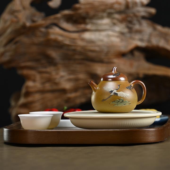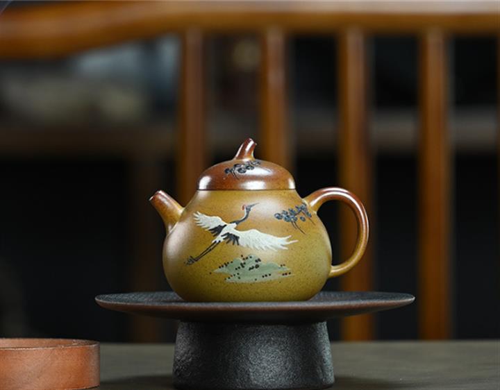 320cc稀有墨綠泥仙鶴延年匠心茶壺POT8367