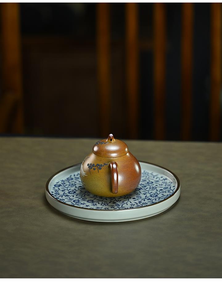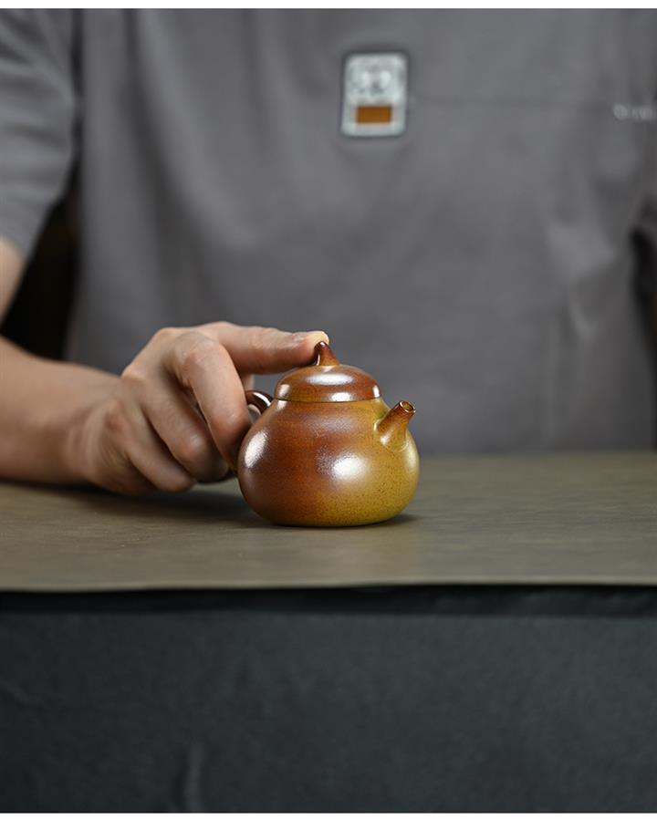 180cc原礦石黃泥逸瓢刻繪茶壺POT8361