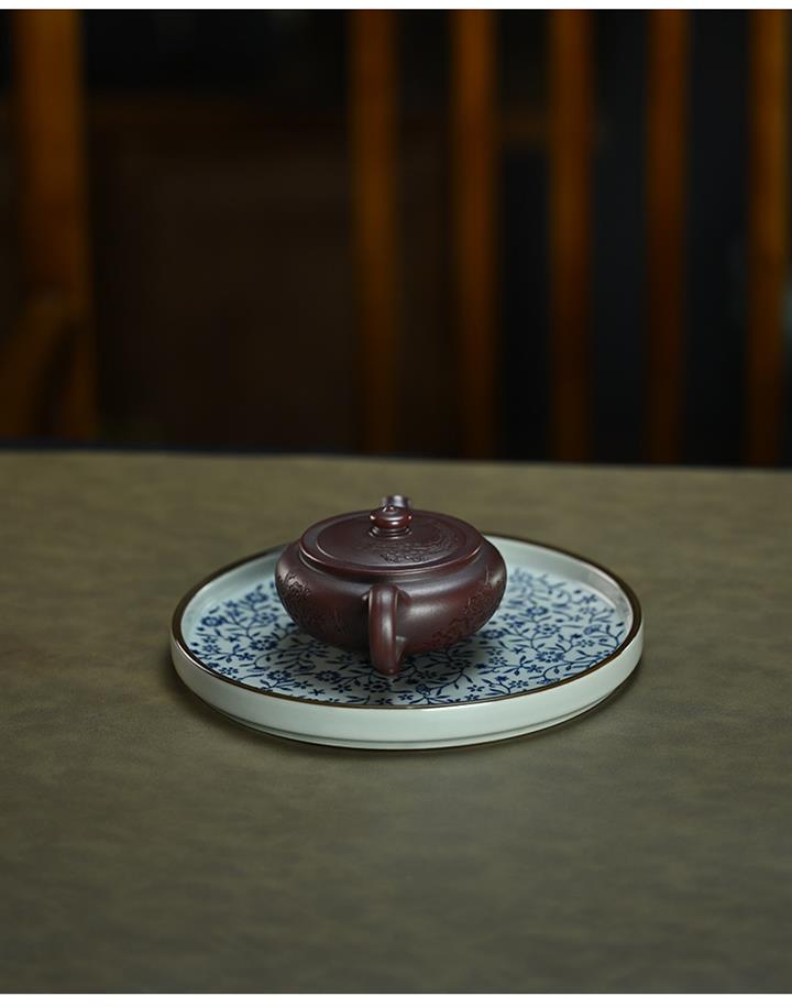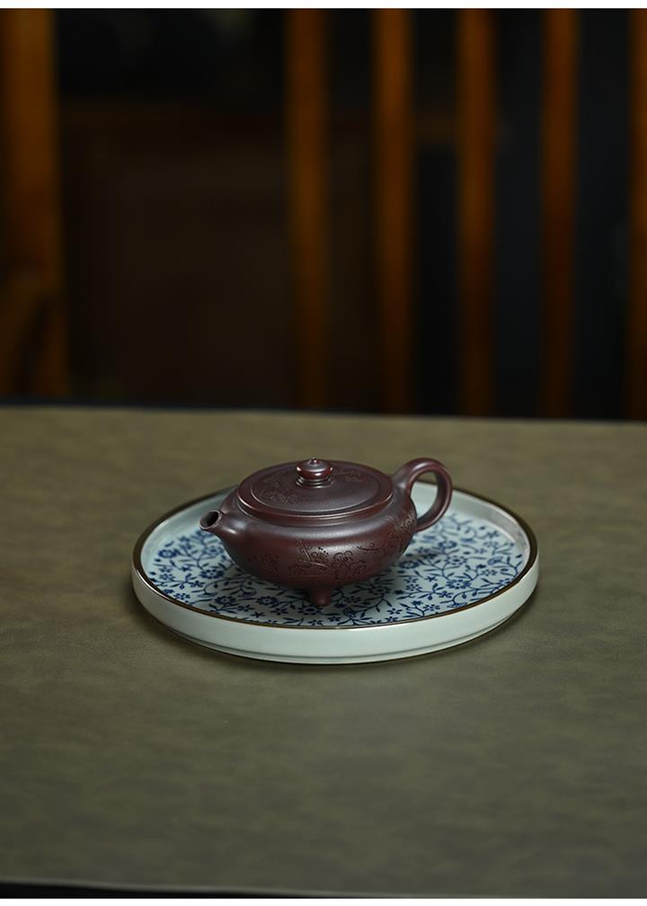 【泥料特點】砂土氣重,似淳實農民,日久使用,漸露鋒芒,養成變化,溫潤莊重。紫砂是壹種雙重氣孔結構的多孔性材質,氣孔微細,密度高。用紫砂壺沏茶,不失原味,且香不渙散,得茶之真香真味。紫砂使用越久,壺身色澤越發光亮照人,氣韻溫雅。紫砂壺長久使用器身會因撫摸擦拭,變得越發溫潤光澤。
