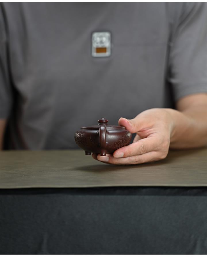 150cc原礦古紅泥茄瓜刻繪茶壺POT8360