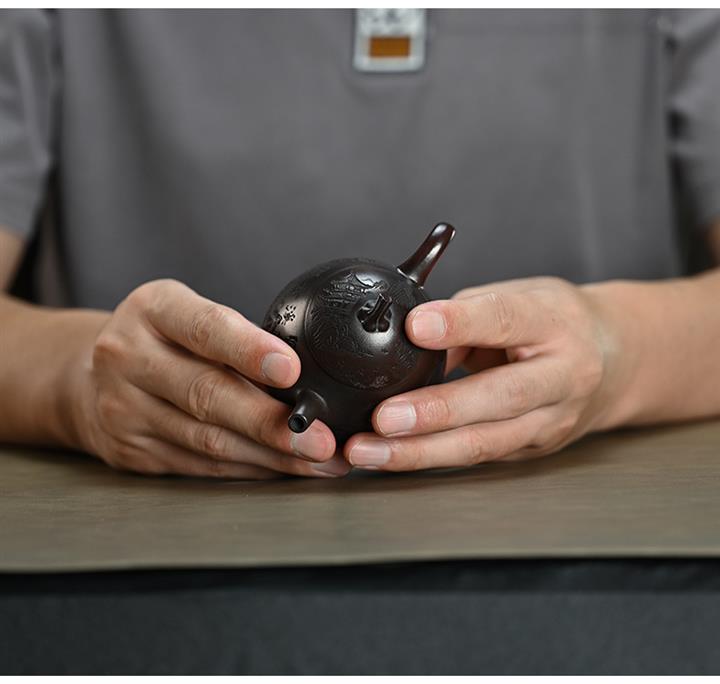 300cc原礦古紅泥周盤魚化龍刻繪茶壺POT8362