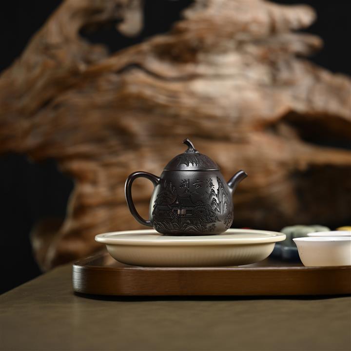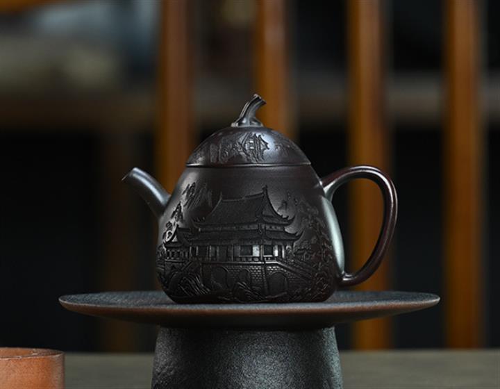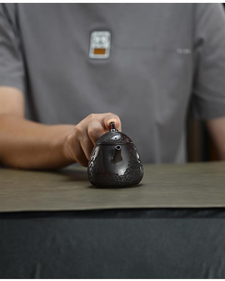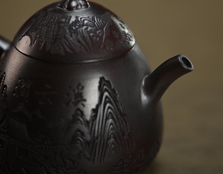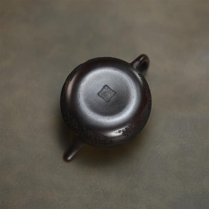 210cc原礦綠泥百福納財刻繪茶壺POT8363