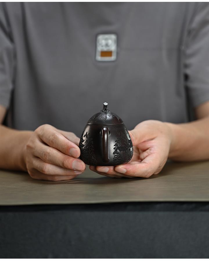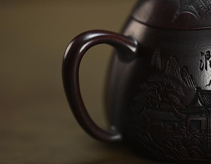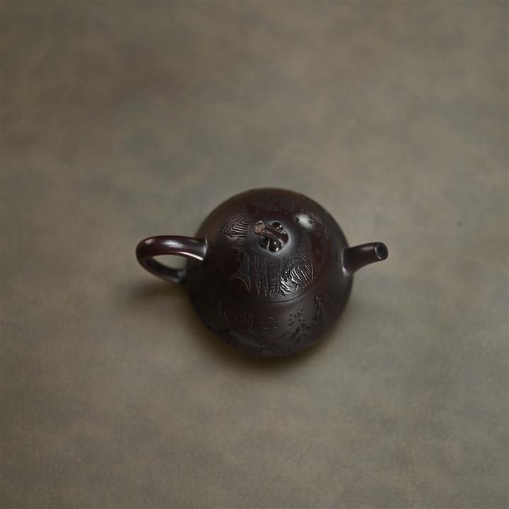 150cc原礦古紅泥茄瓜刻繪茶壺POT8360