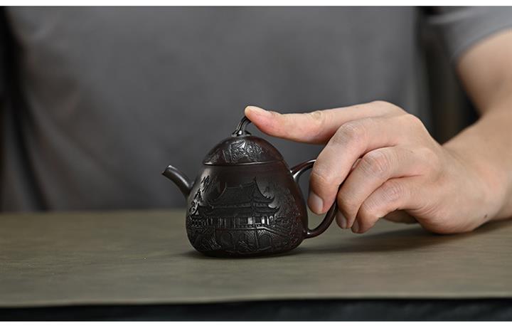 330cc原礦紫泥嶽陽樓閣龍頭漢瓦壺POT8371