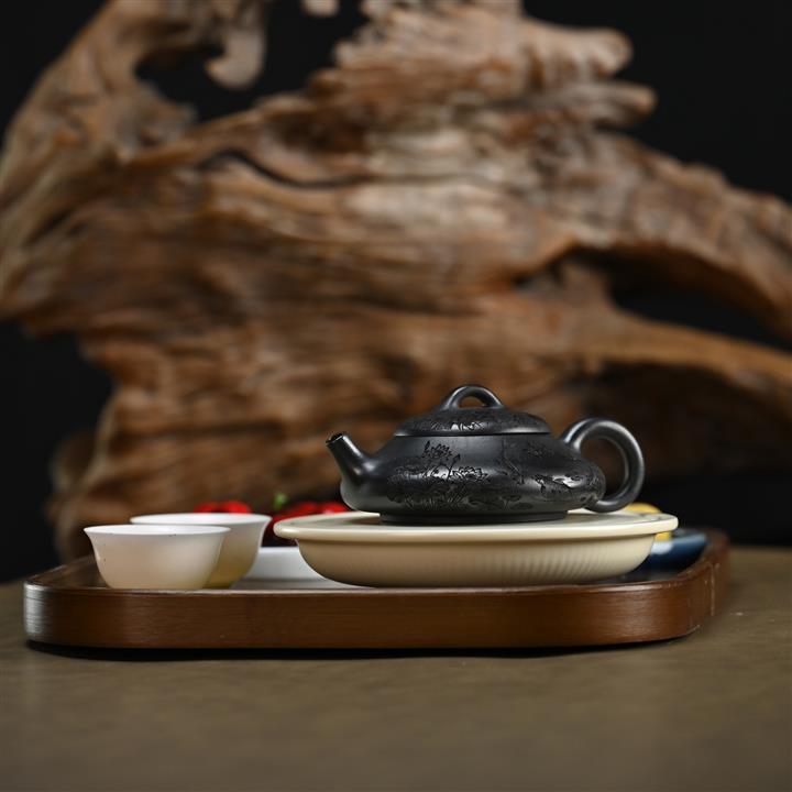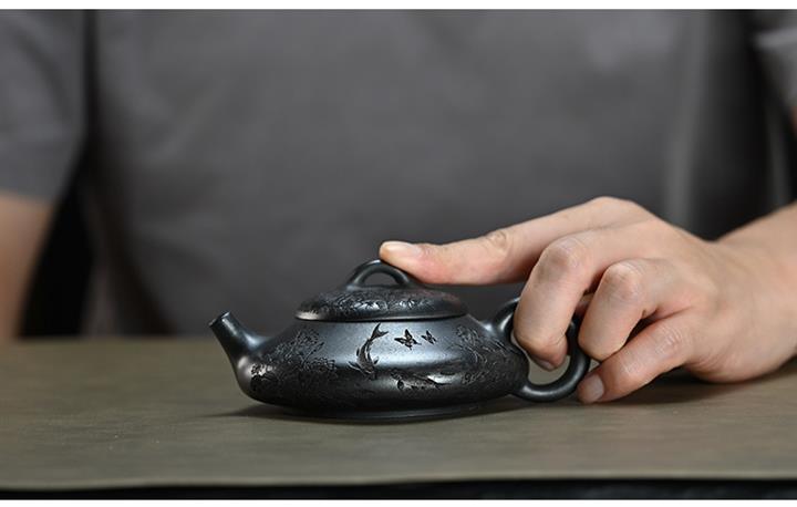 300cc原礦古紅泥周盤魚化龍刻繪茶壺POT8362