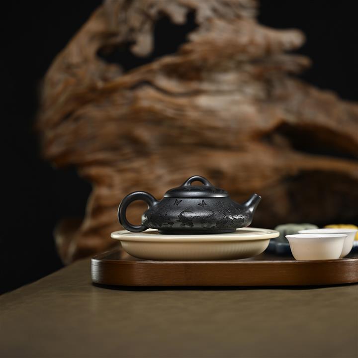 【泥料特點】砂土氣重,似淳實農民,日久使用,漸露鋒芒,養成變化,溫潤莊重。紫砂是壹種雙重氣孔結構的多孔性材質,氣孔微細,密度高。用紫砂壺沏茶,不失原味,且香不渙散,得茶之真香真味。紫砂使用越久,壺身色澤越發光亮照人,氣韻溫雅。紫砂壺長久使用器身會因撫摸擦拭,變得越發溫潤光澤。