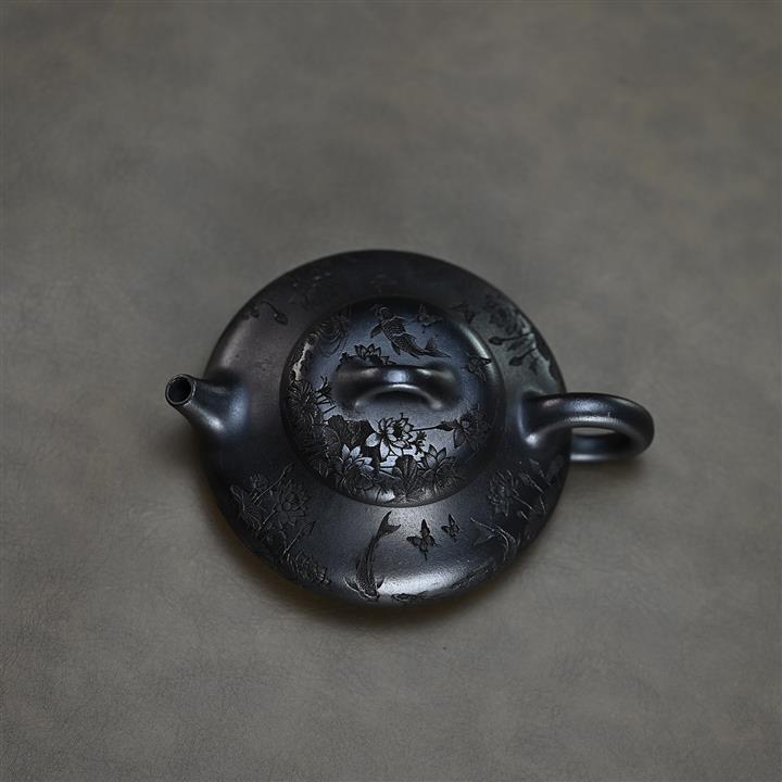 320cc稀有墨綠泥仙鶴延年匠心茶壺POT8367