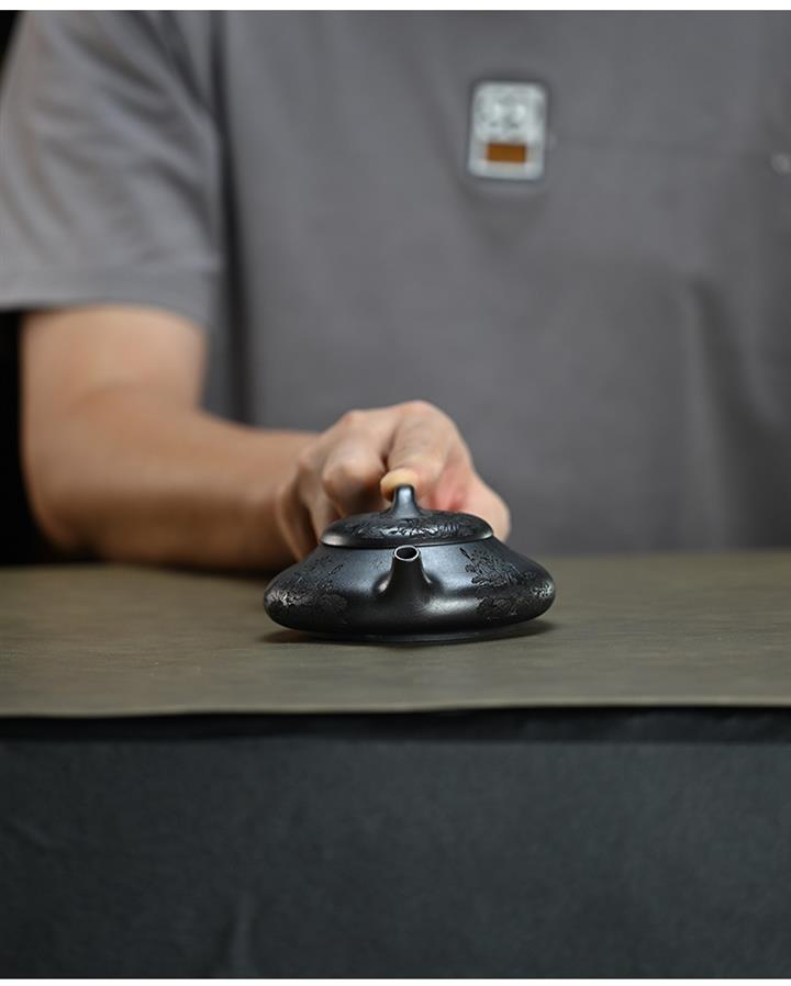 210cc原礦綠泥百福納財刻繪茶壺POT8363
