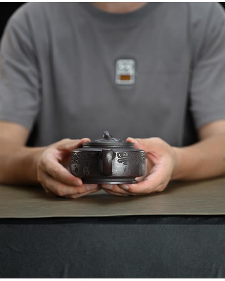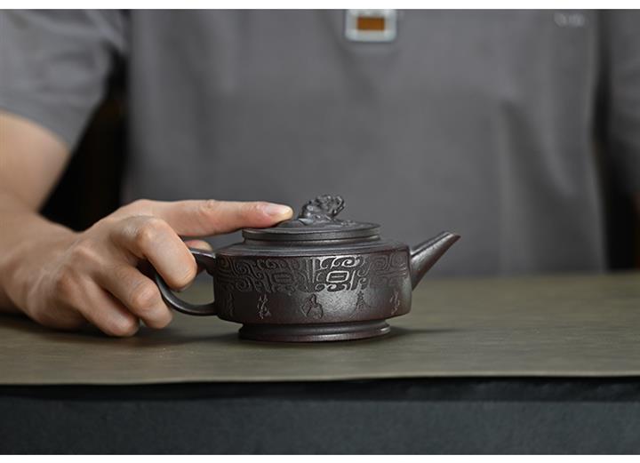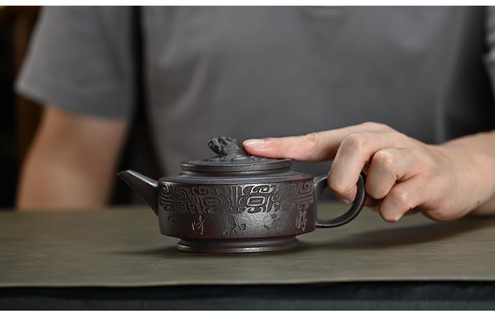 210cc原礦綠泥百福納財刻繪茶壺POT8363