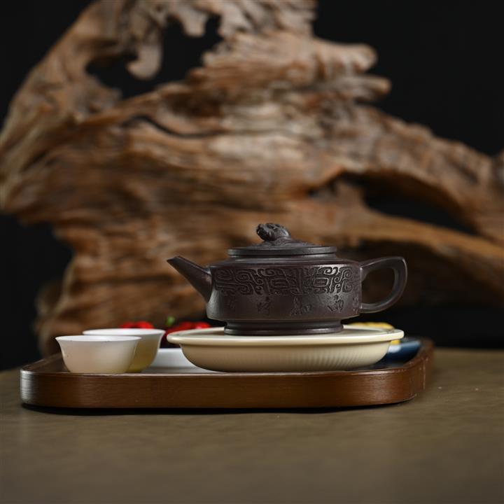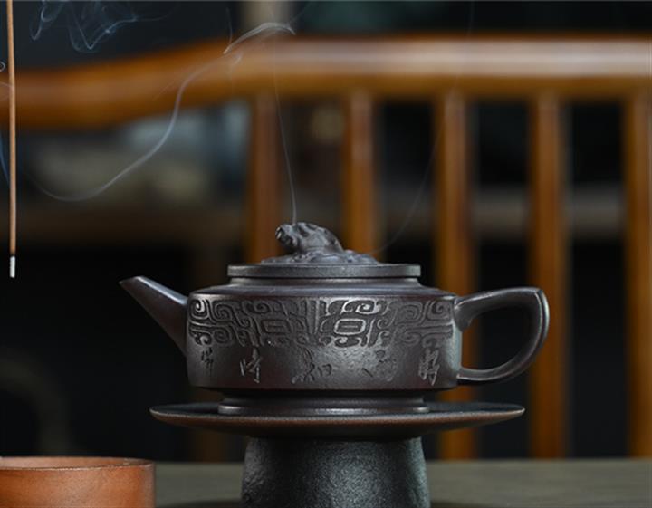 【泥料特點】砂土氣重,似淳實農民,日久使用,漸露鋒芒,養成變化,溫潤莊重。紫砂是壹種雙重氣孔結構的多孔性材質,氣孔微細,密度高。用紫砂壺沏茶,不失原味,且香不渙散,得茶之真香真味。紫砂使用越久,壺身色澤越發光亮照人,氣韻溫雅。紫砂壺長久使用器身會因撫摸擦拭,變得越發溫潤光澤。