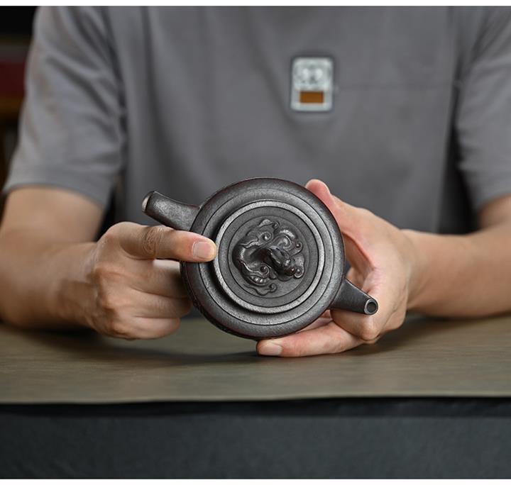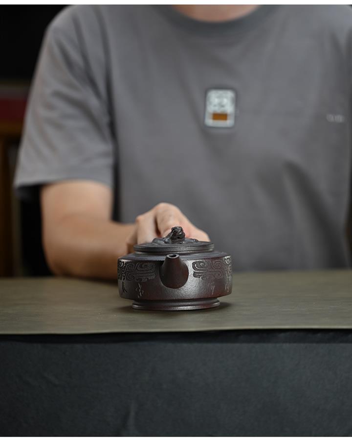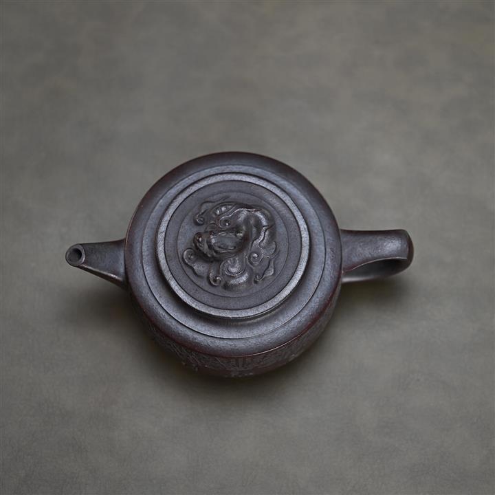 300cc原礦古紅泥周盤魚化龍刻繪茶壺POT8362