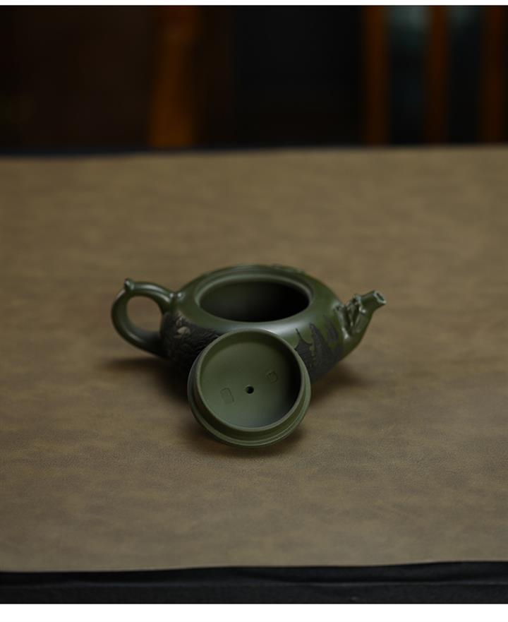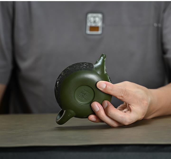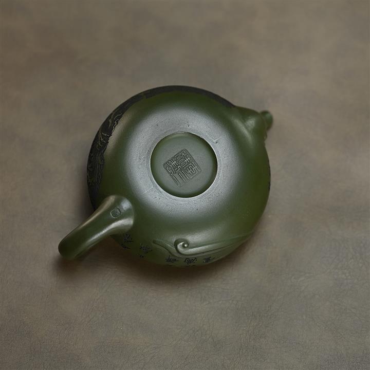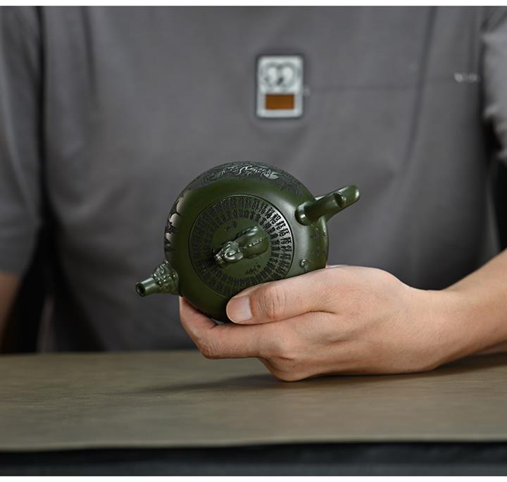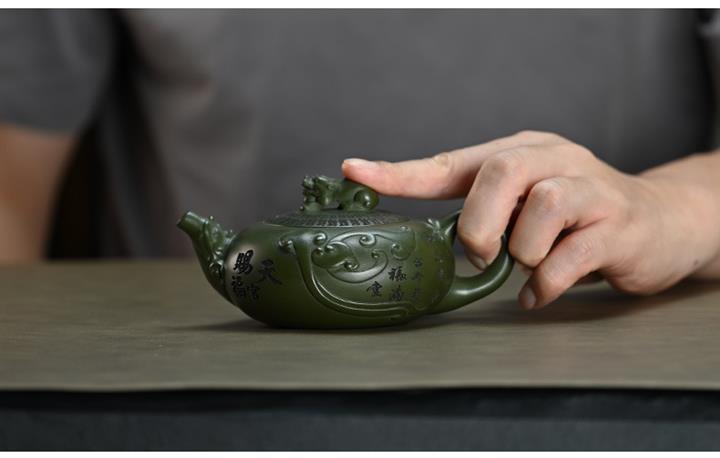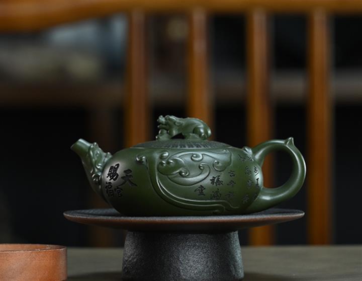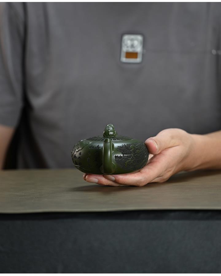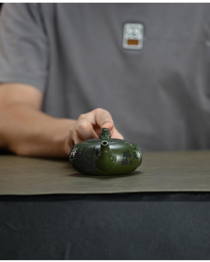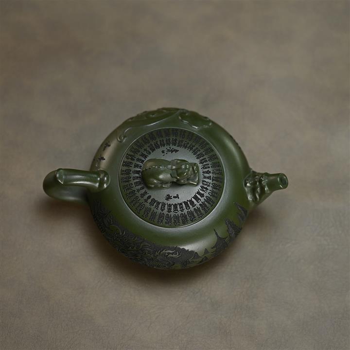 210cc原礦綠泥百福納財刻繪茶壺POT8363