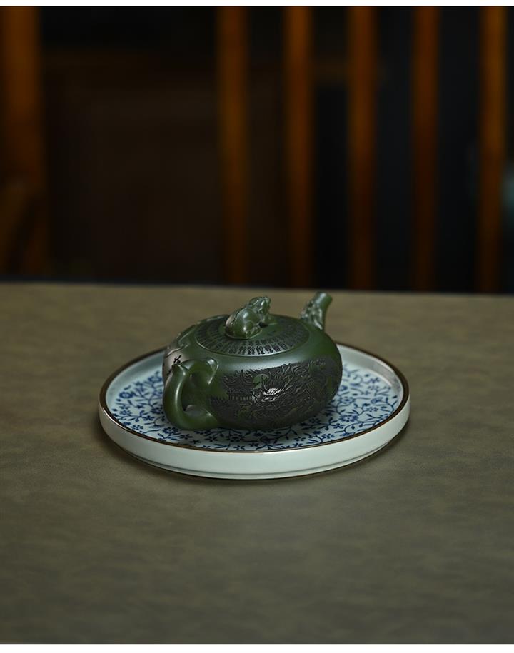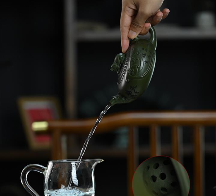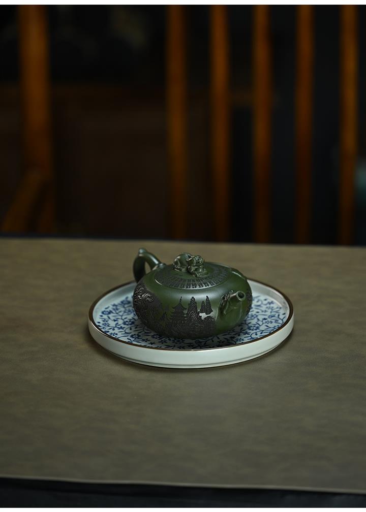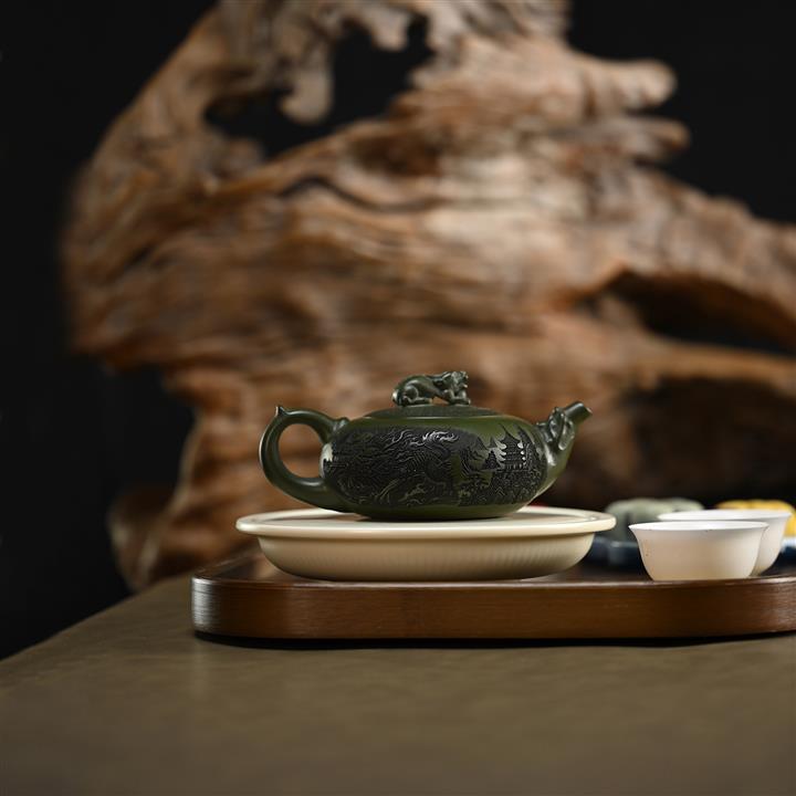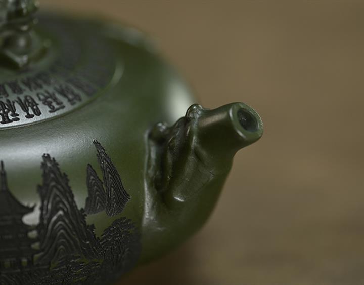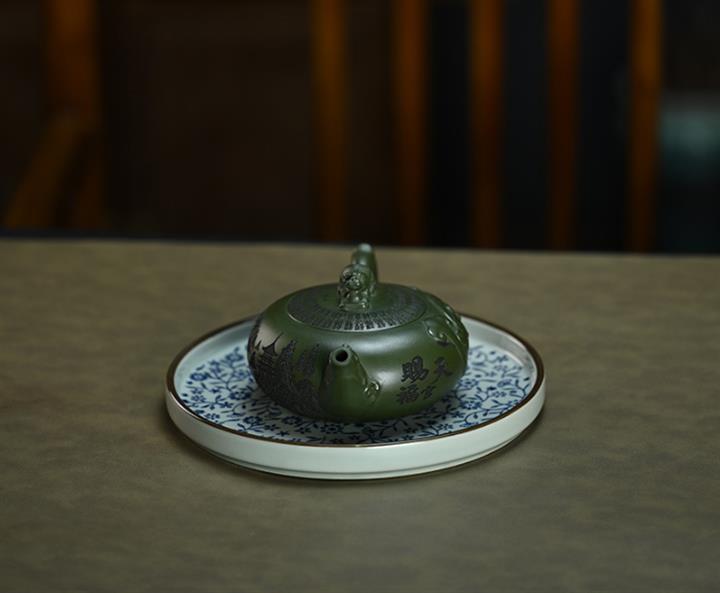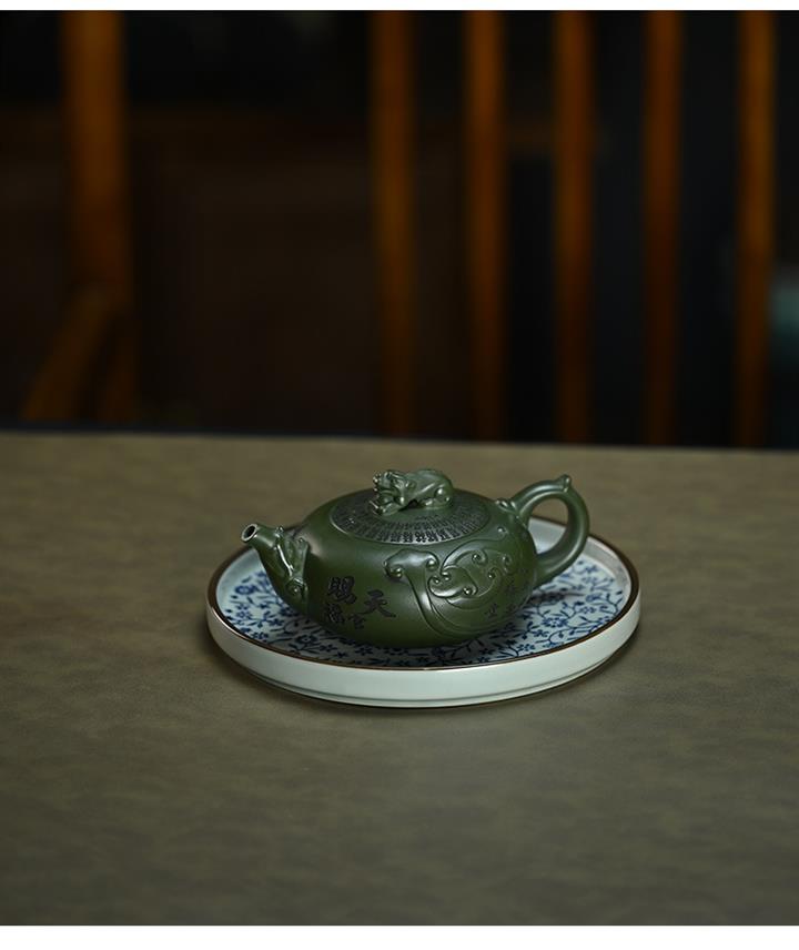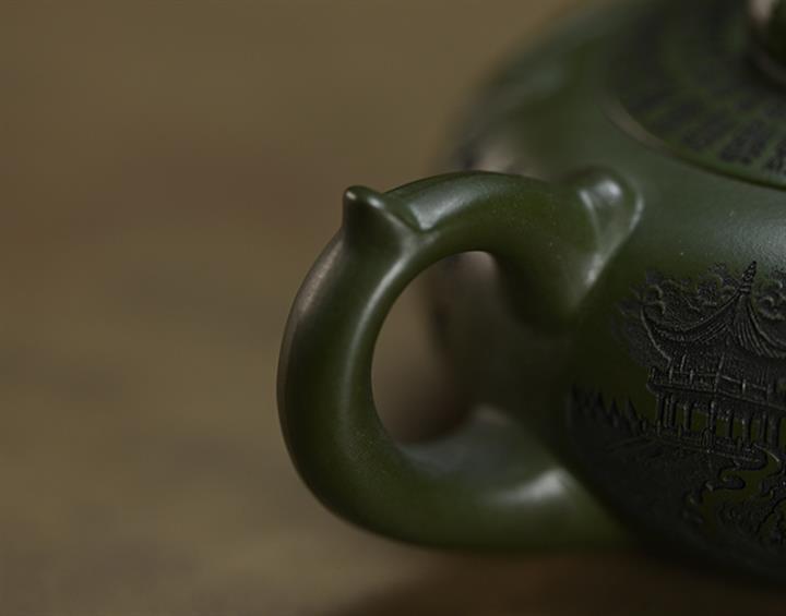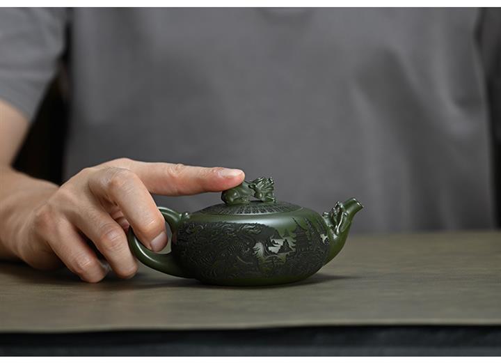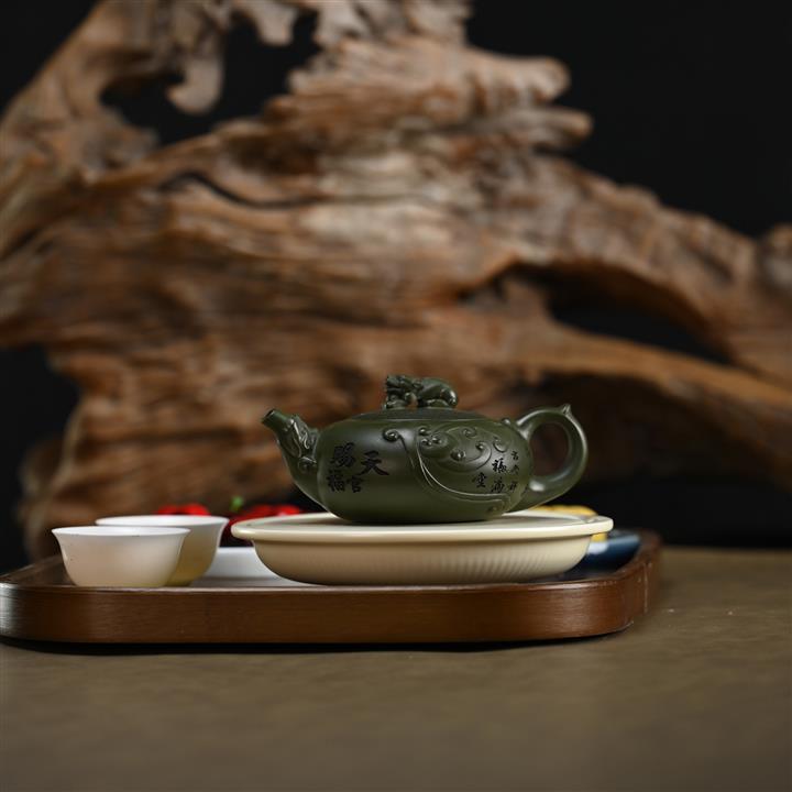 210cc原礦綠泥百福納財刻繪茶壺POT8363