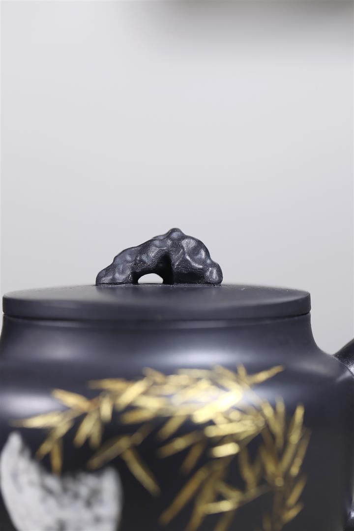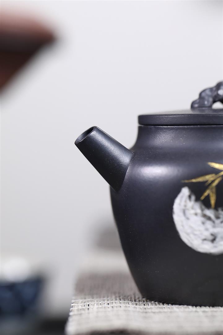 320cc稀有墨綠泥仙鶴延年匠心茶壺POT8367