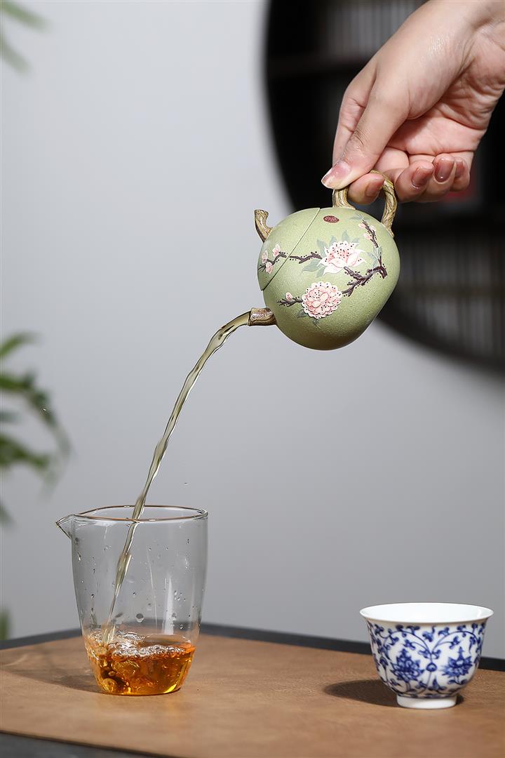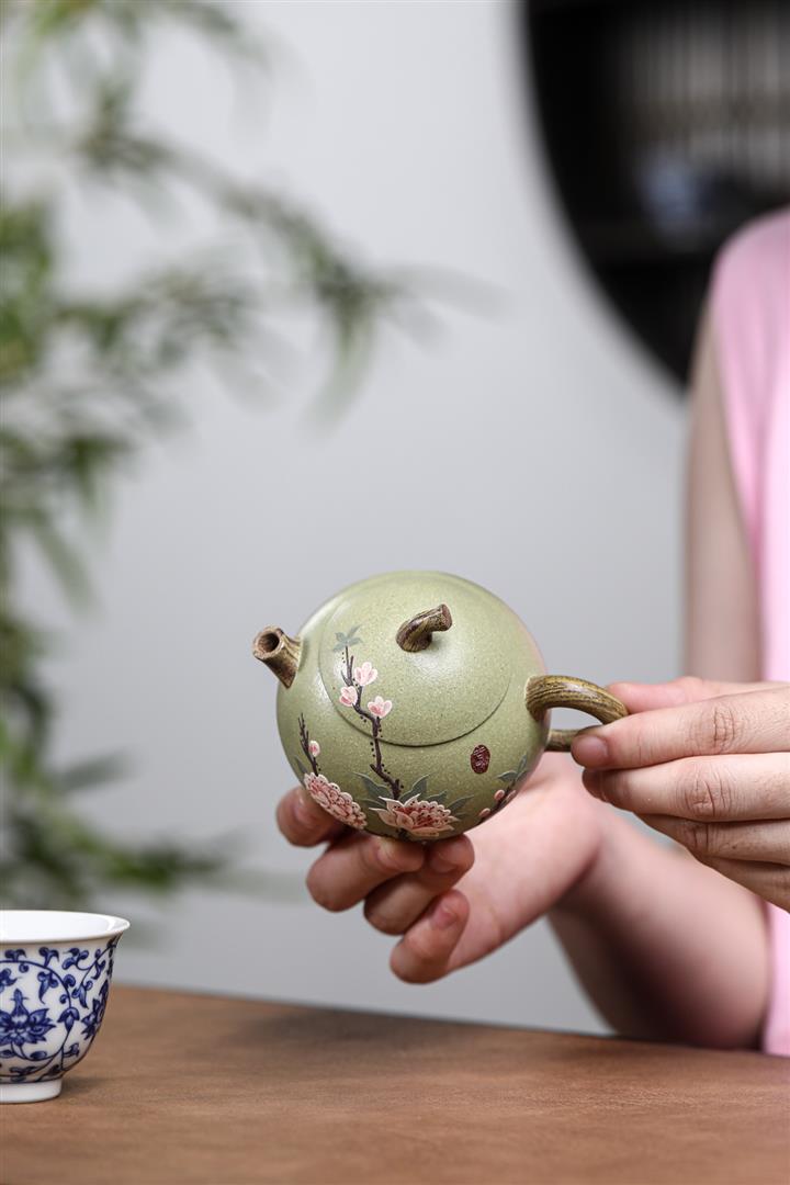 【泥料特點】砂土氣重,似淳實農民,日久使用,漸露鋒芒,養成變化,溫潤莊重。紫砂是壹種雙重氣孔結構的多孔性材質,氣孔微細,密度高。用紫砂壺沏茶,不失原味,且香不渙散,得茶之真香真味。紫砂使用越久,壺身色澤越發光亮照人,氣韻溫雅。紫砂壺長久使用器身會因撫摸擦拭,變得越發溫潤光澤。