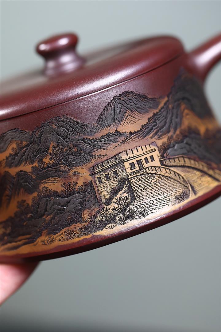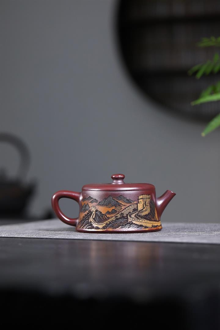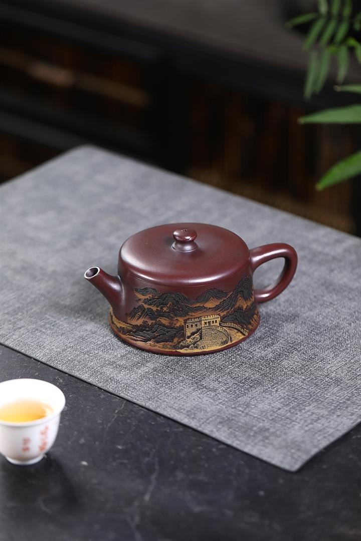 300cc原礦高溫段泥刻繪長城德鐘茶壺POT8389
