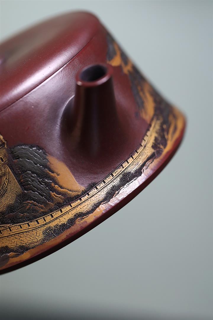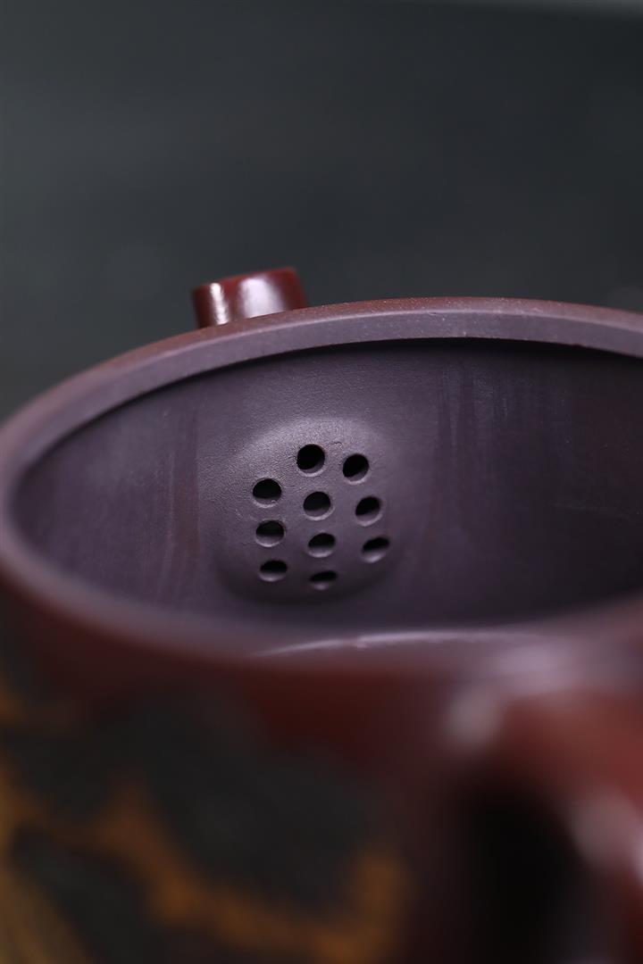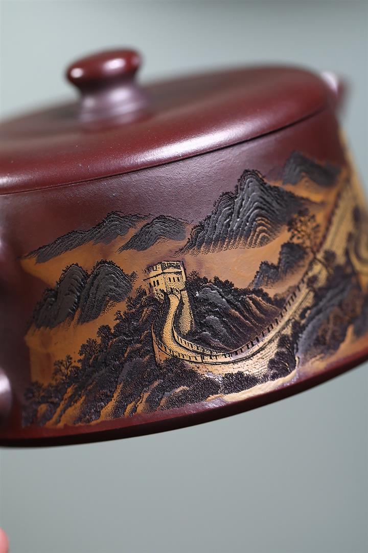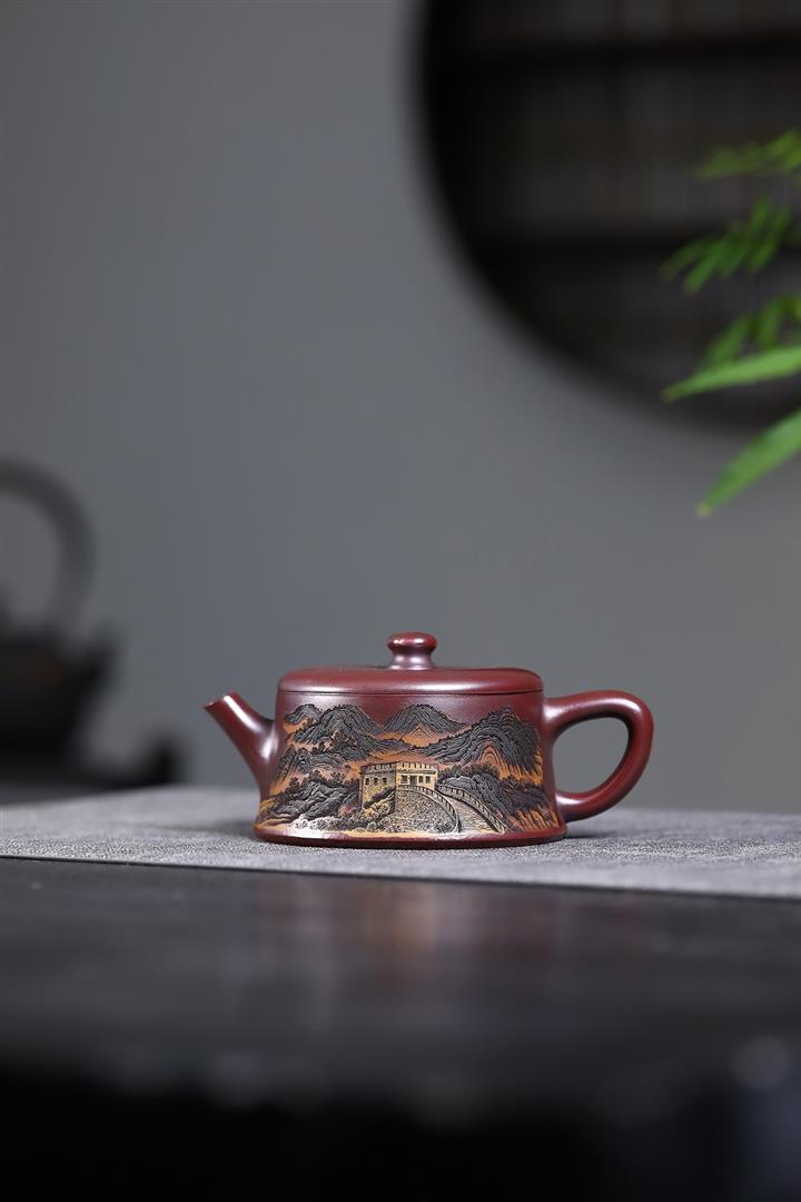 290cc原礦古銅泥彩刻江山攬勝茶壺POT8383