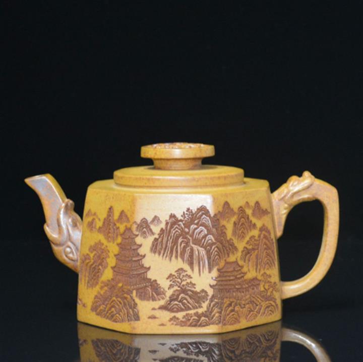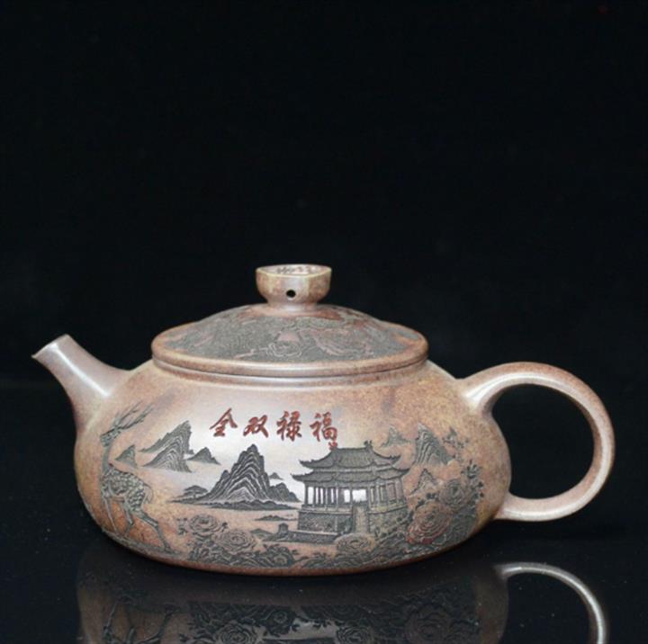 300cc原礦高溫段泥刻繪長城德鐘茶壺POT8389