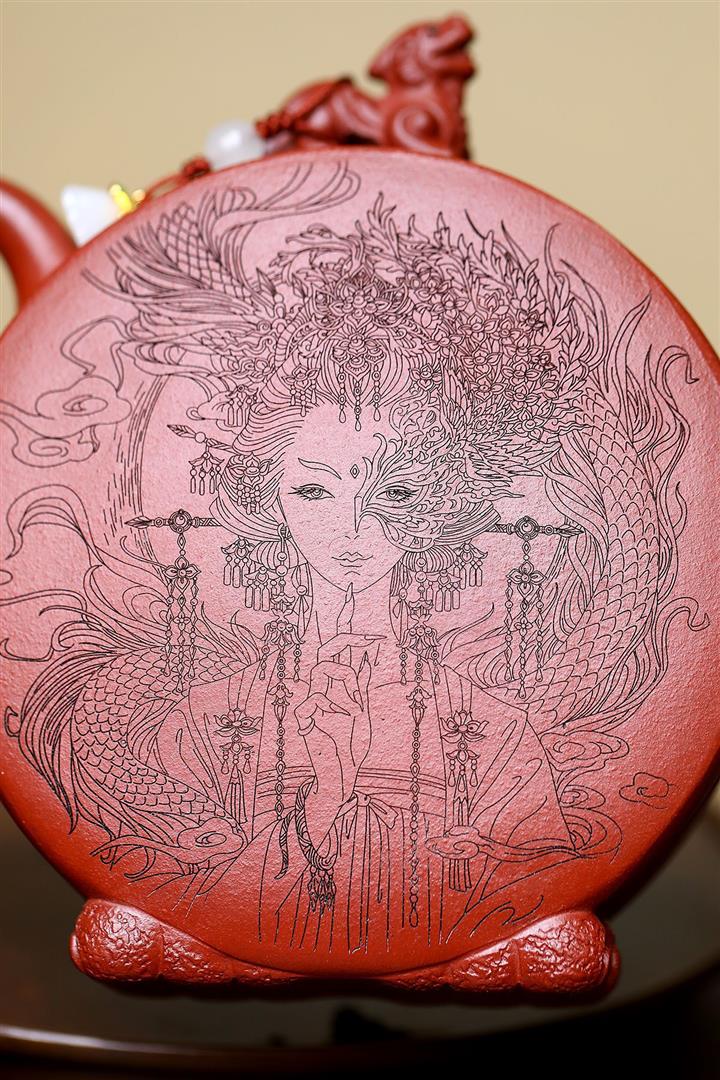 300cc原礦高溫段泥刻繪長城德鐘茶壺POT8389