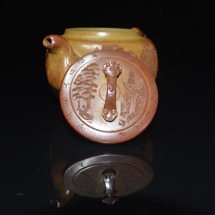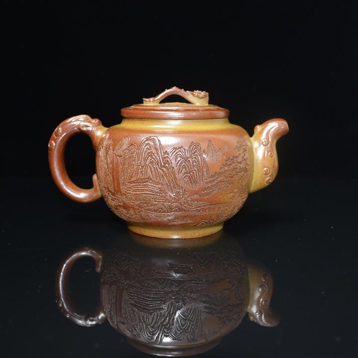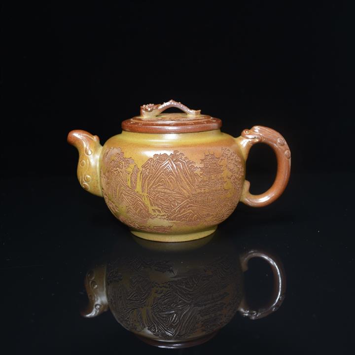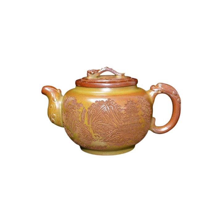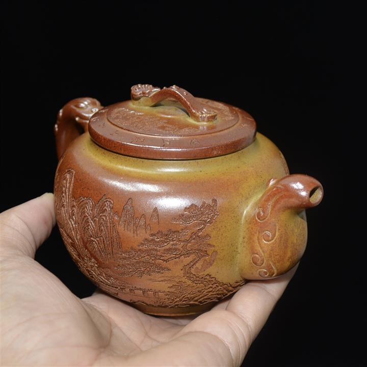 320cc原礦石紅泥貝殼燒金砂逸景壺POT8400