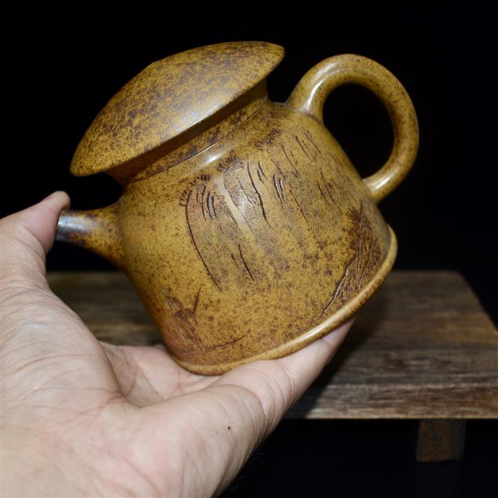 320cc原礦石紅泥貝殼燒金砂逸景壺POT8400