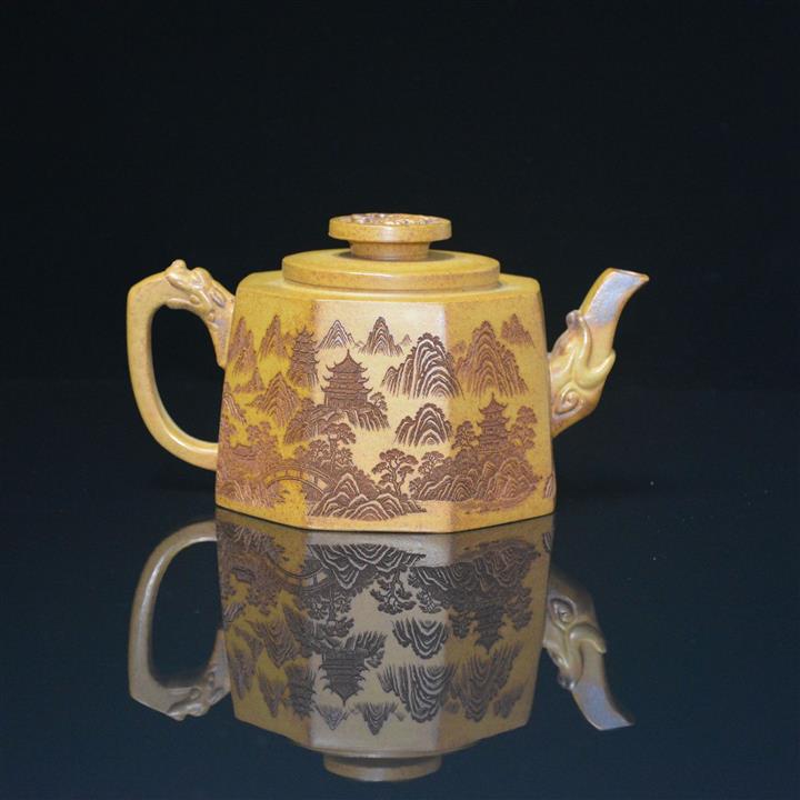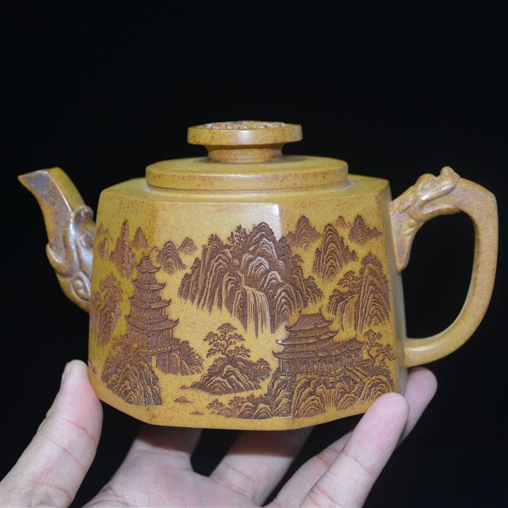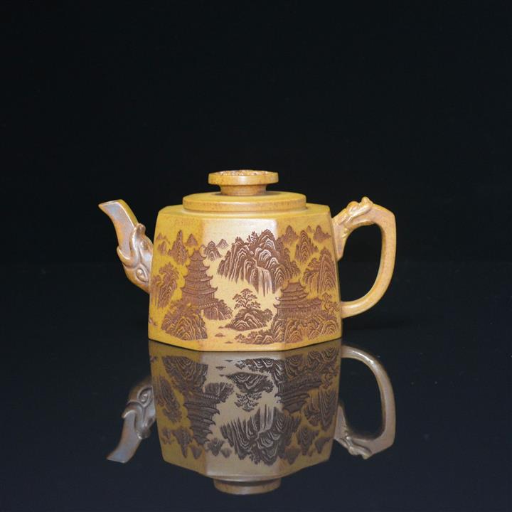 370cc原礦高溫段泥山水八方井欄泡茶壺POT8393