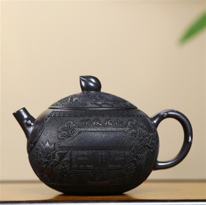 460cc原礦石紅泥滿刻鐘鳴山河茶壺POT8402