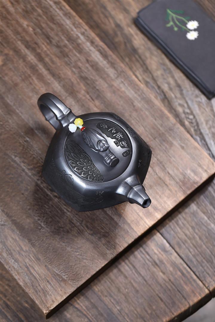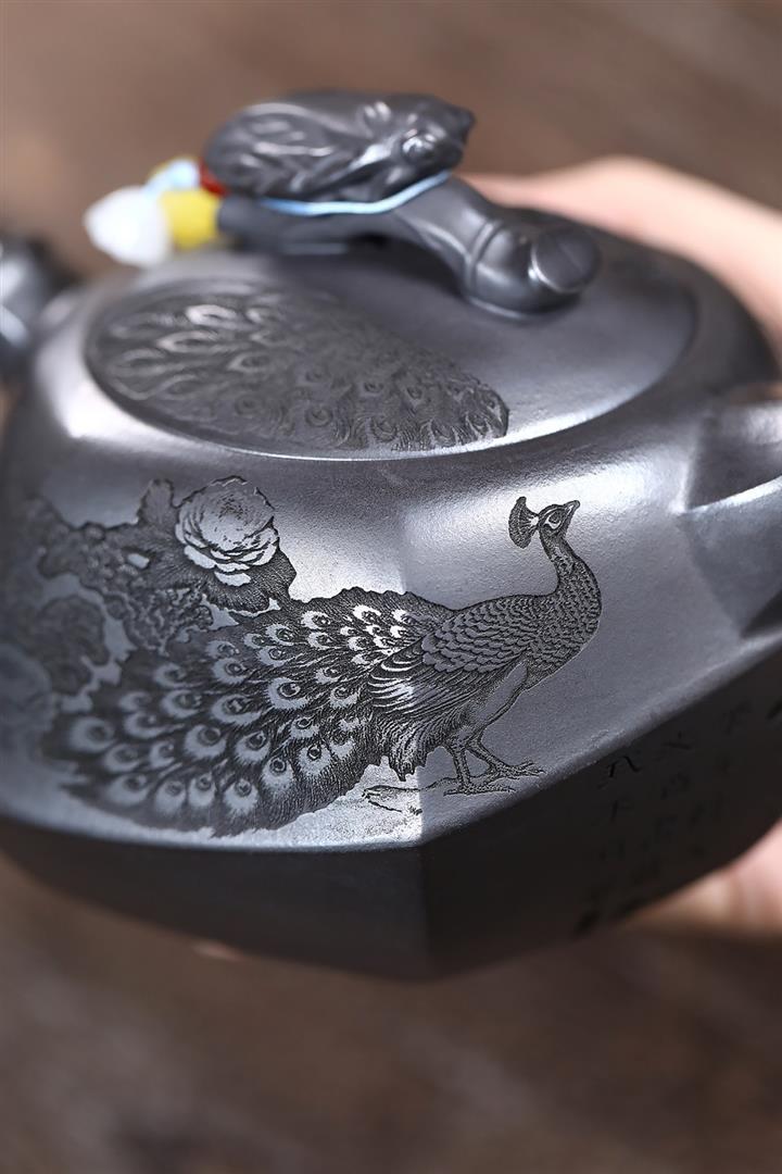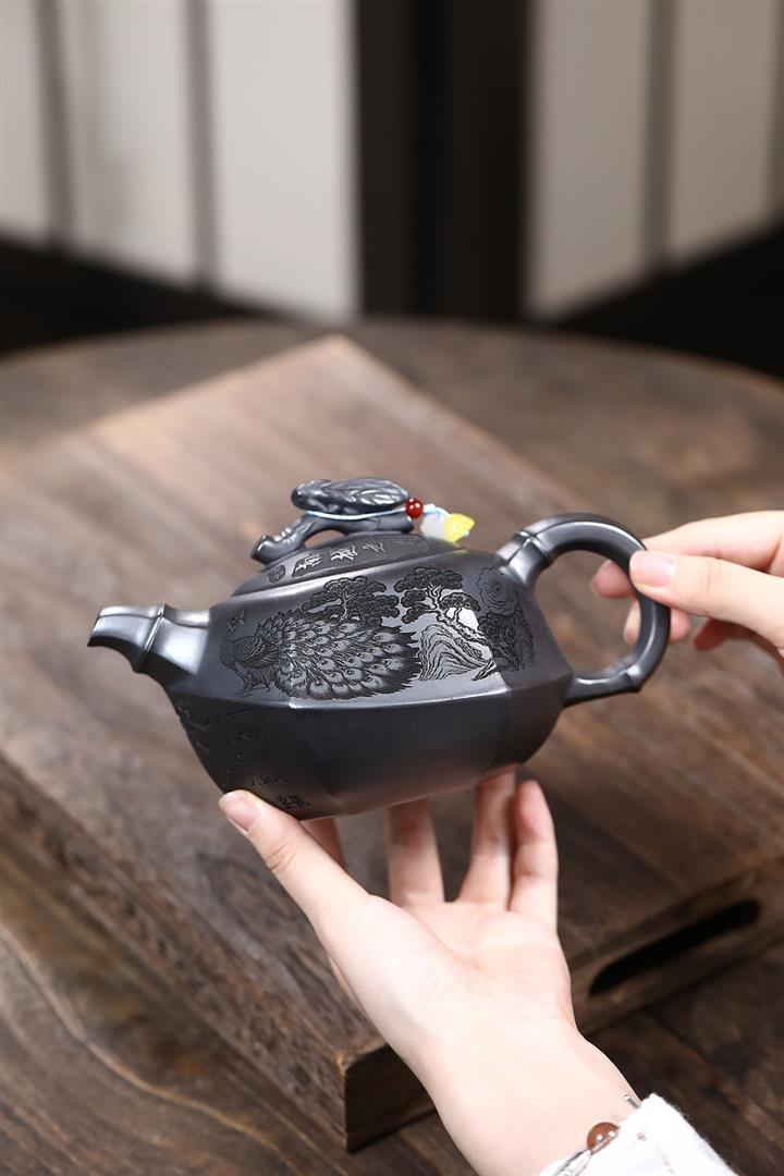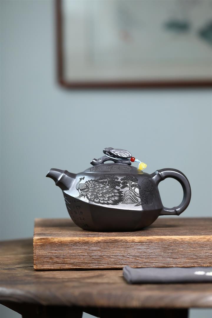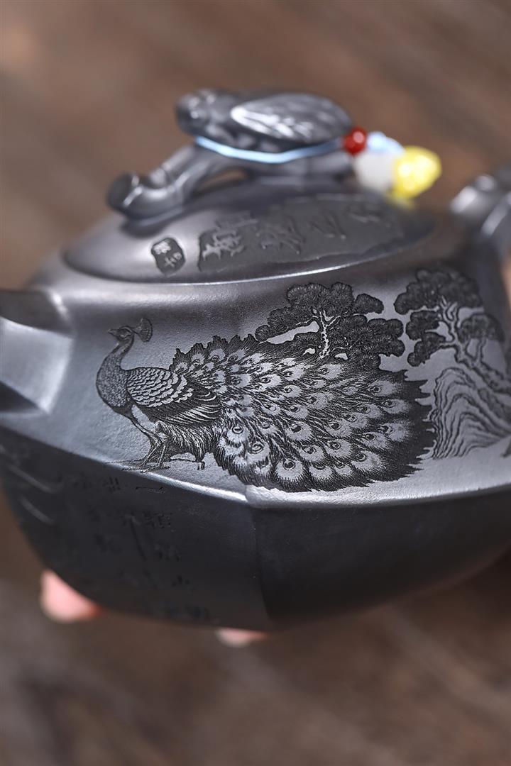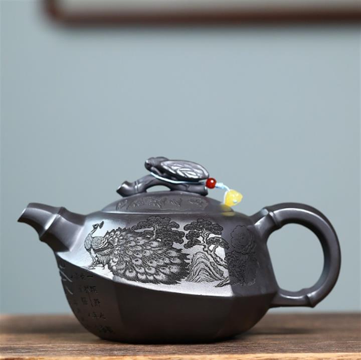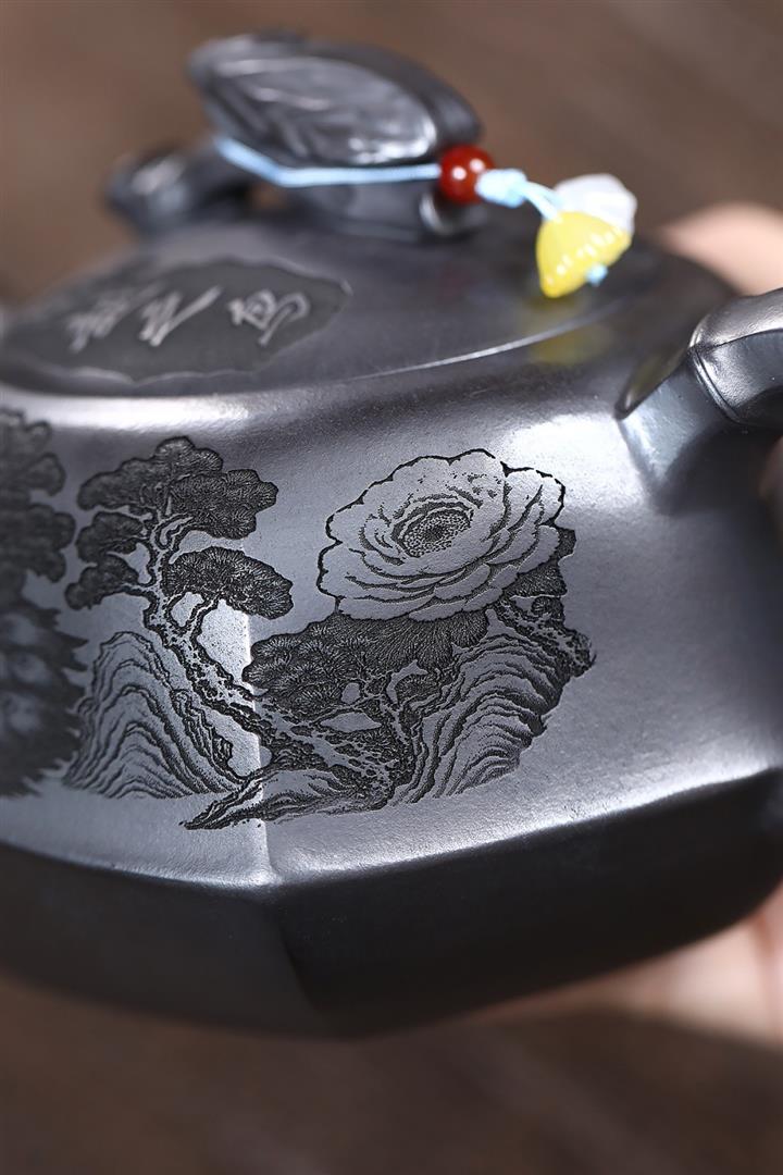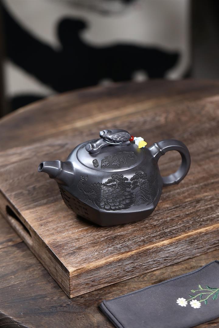 320cc原礦紅皮龍刻繪山水秦權泡茶壺POT8411