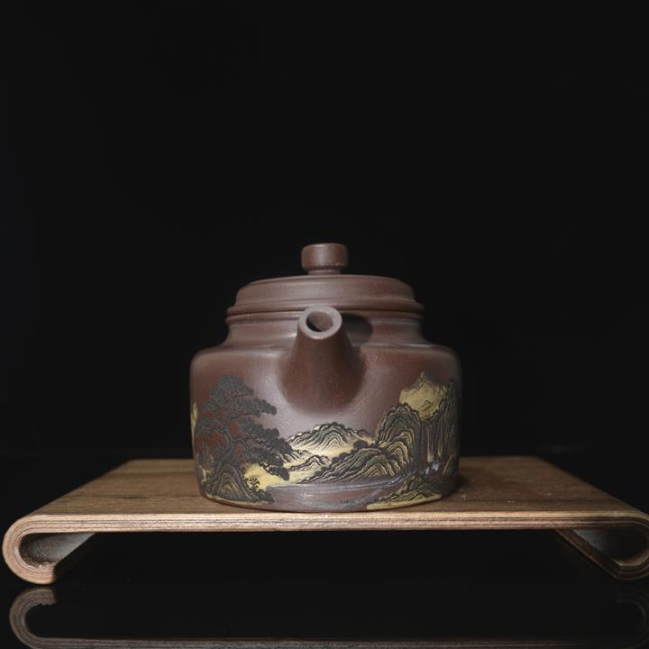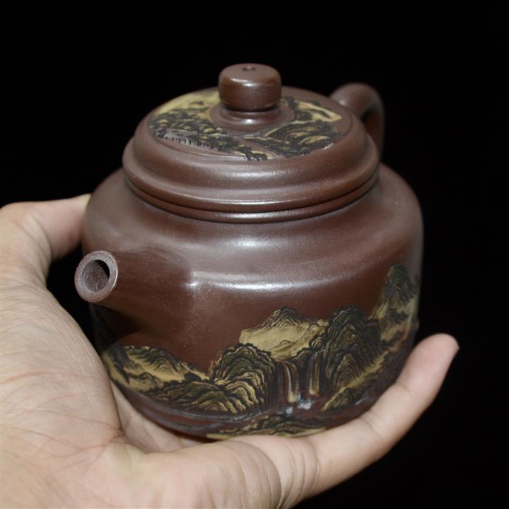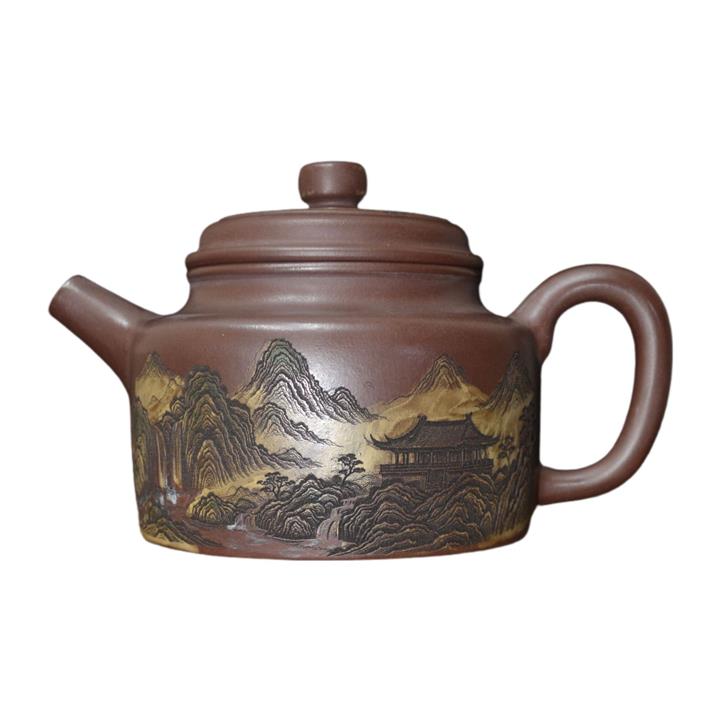 300cc原礦紫泥泥繪山水德鐘泡茶壺POT8413
