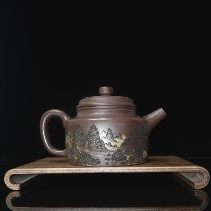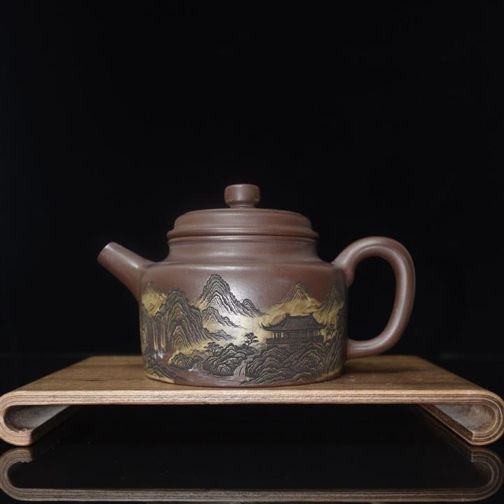 340cc原礦紫泥刻繪山水仿古泡茶壺POT8416
