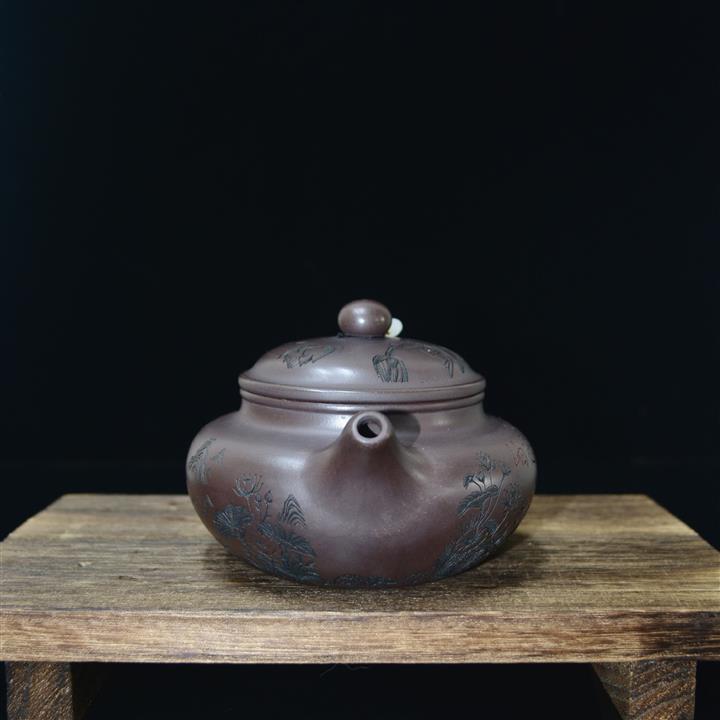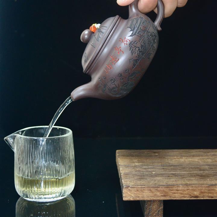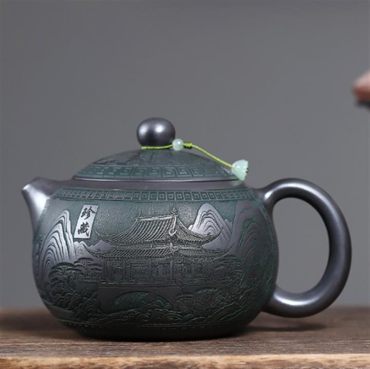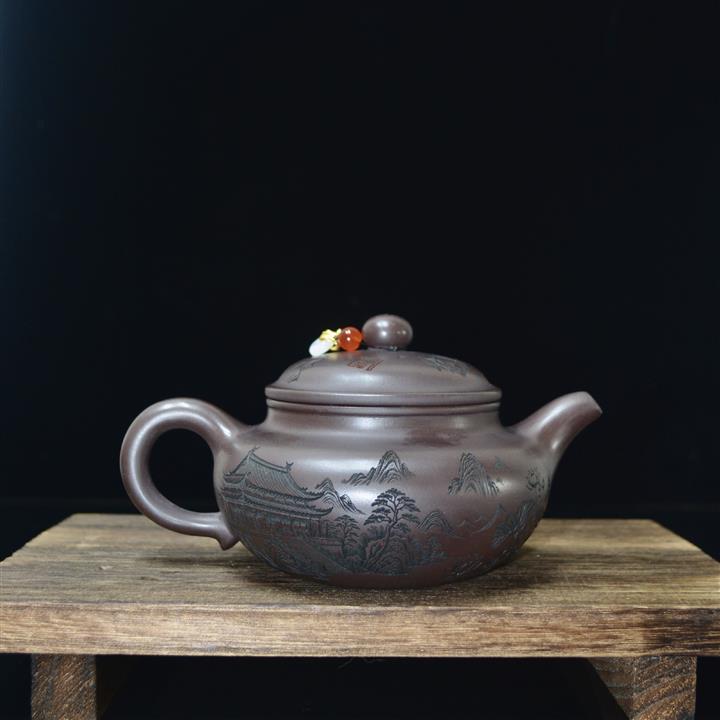 340cc原礦紫泥刻繪山水仿古泡茶壺POT8416