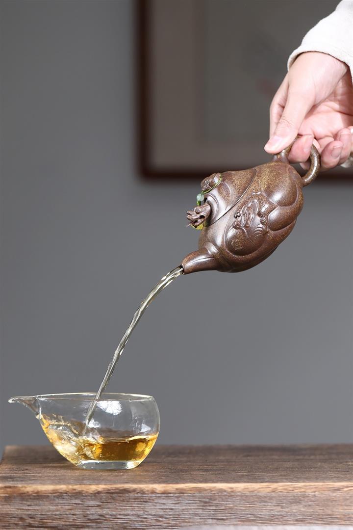 【泥料特點】砂土氣重,似淳實農民,日久使用,漸露鋒芒,養成變化,溫潤莊重。紫砂是壹種雙重氣孔結構的多孔性材質,氣孔微細,密度高。用紫砂壺沏茶,不失原味,且香不渙散,得茶之真香真味。紫砂使用越久,壺身色澤越發光亮照人,氣韻溫雅。紫砂壺長久使用器身會因撫摸擦拭,變得越發溫潤光澤。