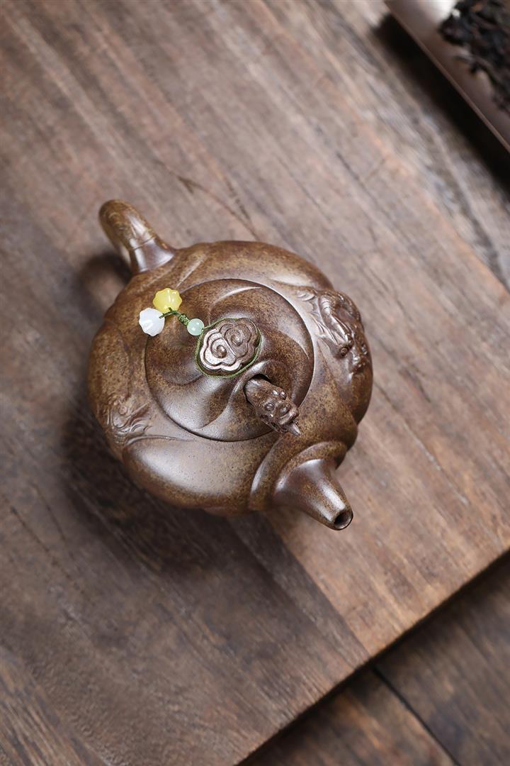 520cc原礦柴燒沈香泥虎嘯山河牛蓋蓮子壺POT8428