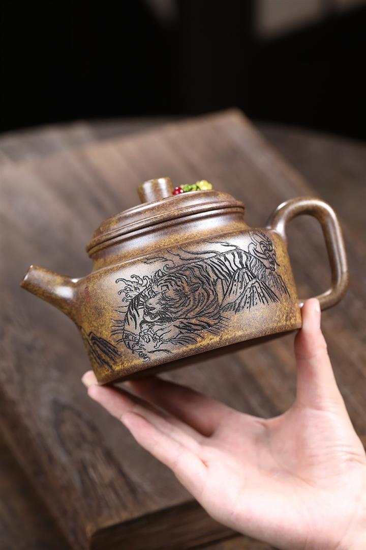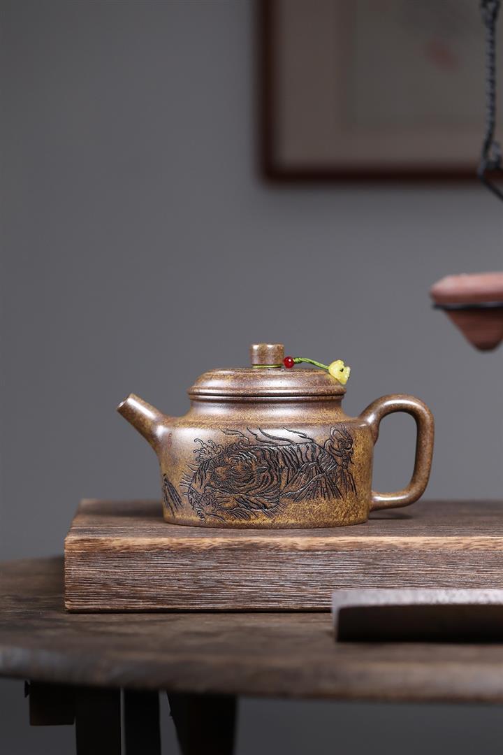 520cc原礦柴燒沈香泥虎嘯山河牛蓋蓮子壺POT8428