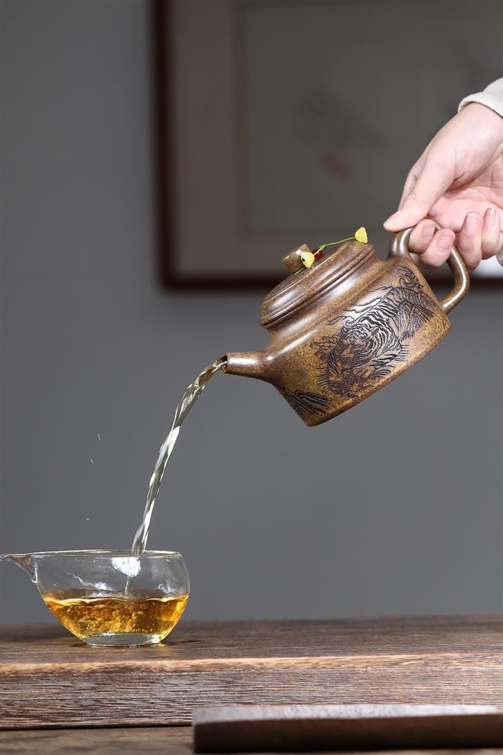 【作品介紹】此款壺形線條流暢,壺把,壺嘴,壺身壹氣呵成栩栩如生,是收藏把玩的好壺,泥料色澤古樸典雅,日久使用,漸露鋒芒,養成變化快,溫潤莊重,用其泡茶,使用的年代久,壺身就溫潤,泡出來的茶湯也就醇郁芳馨。