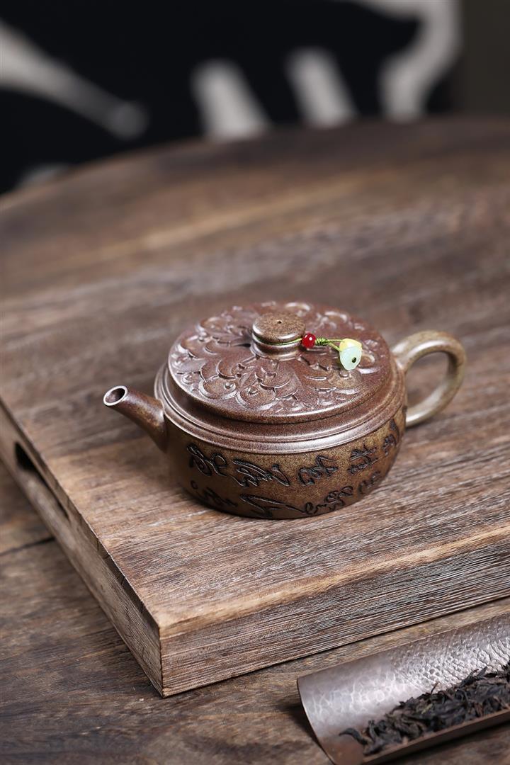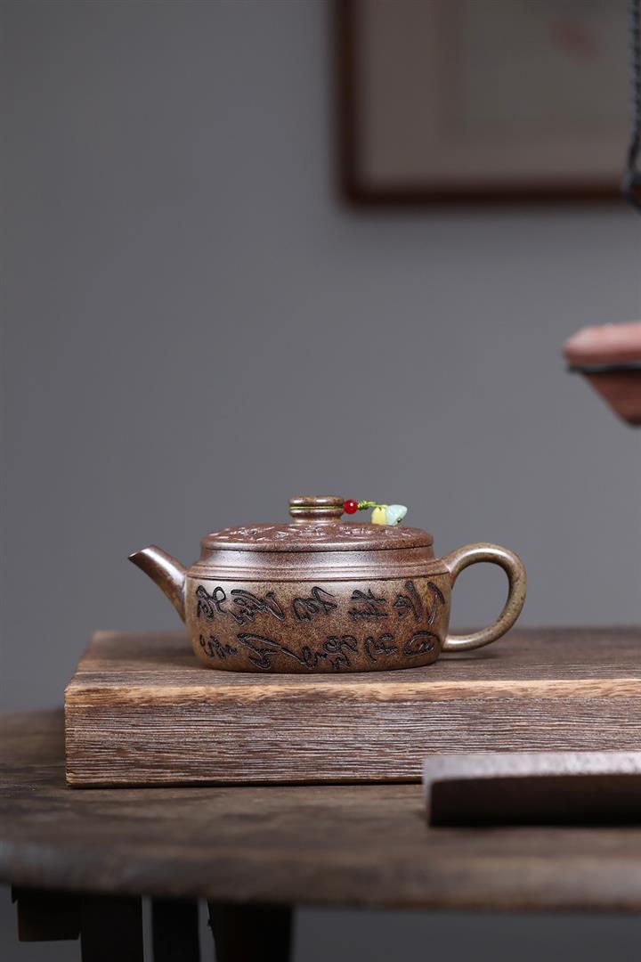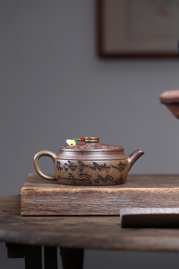 100cc原礦龍骨金砂純手工金蟾汲直茶壺POT8443