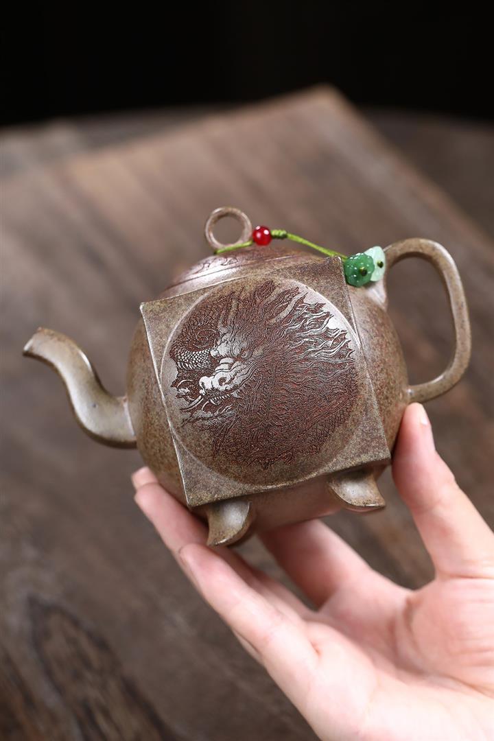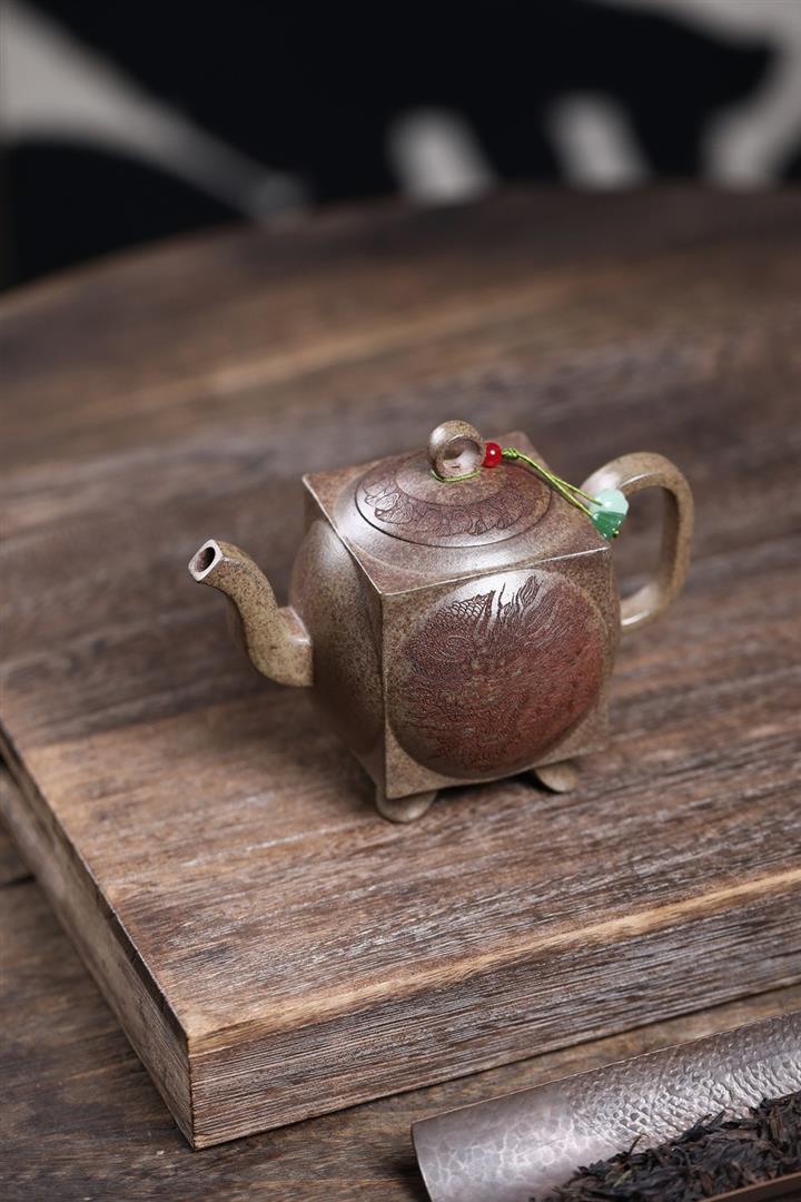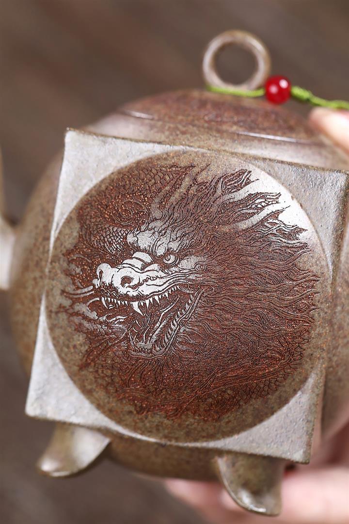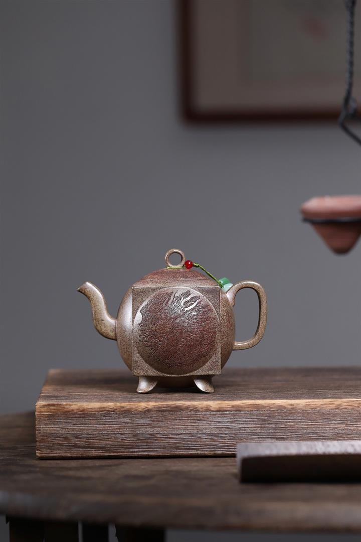 100cc原礦龍骨金砂純手工金蟾汲直茶壺POT8443