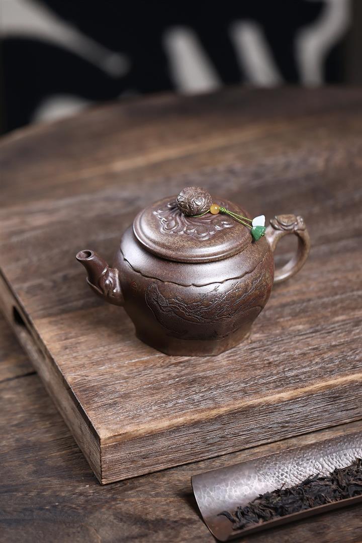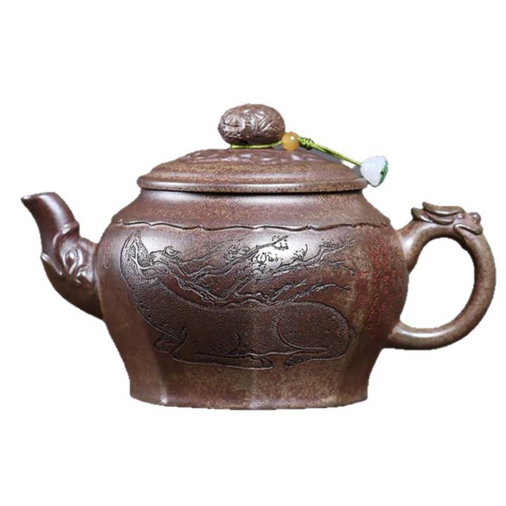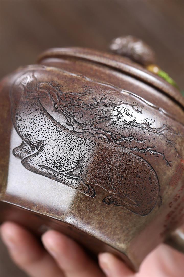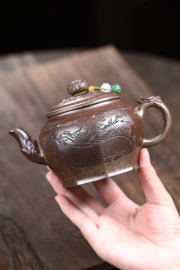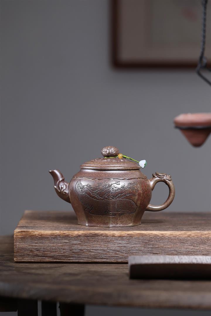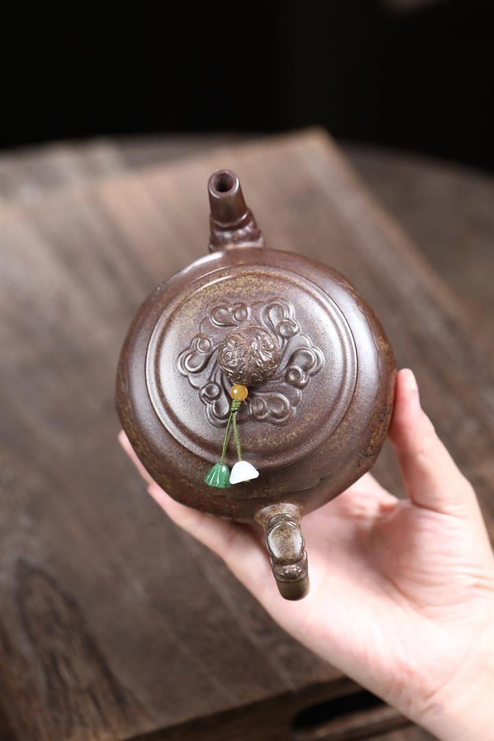 400cc原礦沈香泥柴燒龍吟鹿鳴宮燈壺POT8437