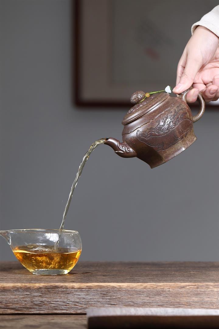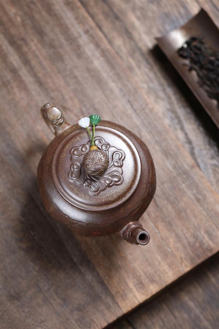 【泥料特點】砂土氣重,似淳實農民,日久使用,漸露鋒芒,養成變化,溫潤莊重。紫砂是壹種雙重氣孔結構的多孔性材質,氣孔微細,密度高。用紫砂壺沏茶,不失原味,且香不渙散,得茶之真香真味。紫砂使用越久,壺身色澤越發光亮照人,氣韻溫雅。紫砂壺長久使用器身會因撫摸擦拭,變得越發溫潤光澤。