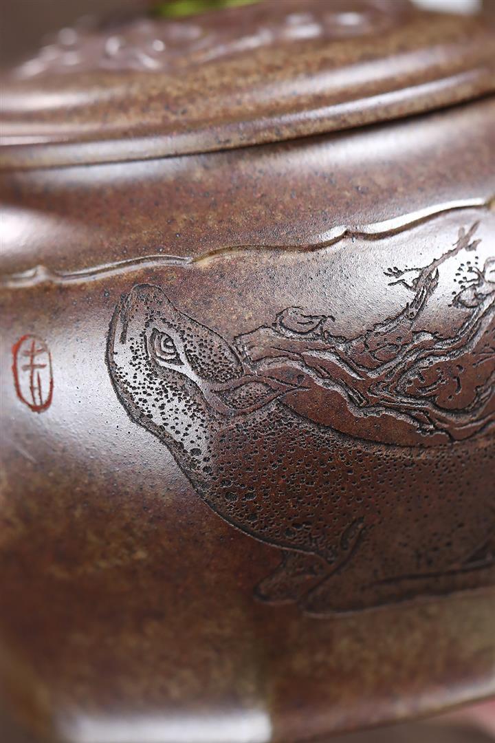 100cc原礦龍骨金砂純手工金蟾汲直茶壺POT8443