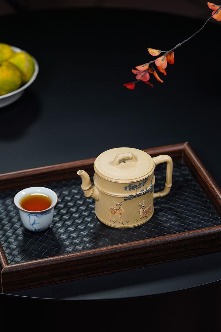 【作品介紹】此款壺形線條流暢,壺把,壺嘴,壺身壹氣呵成栩栩如生,是收藏把玩的好壺,泥料色澤古樸典雅,日久使用,漸露鋒芒,養成變化快,溫潤莊重,用其泡茶,使用的年代久,壺身就溫潤,泡出來的茶湯也就醇郁芳馨。