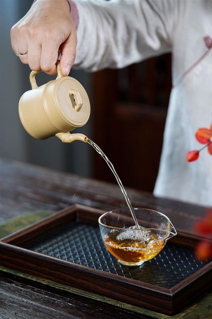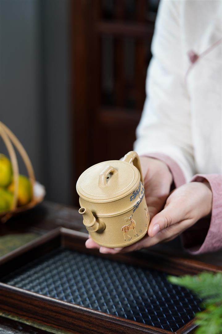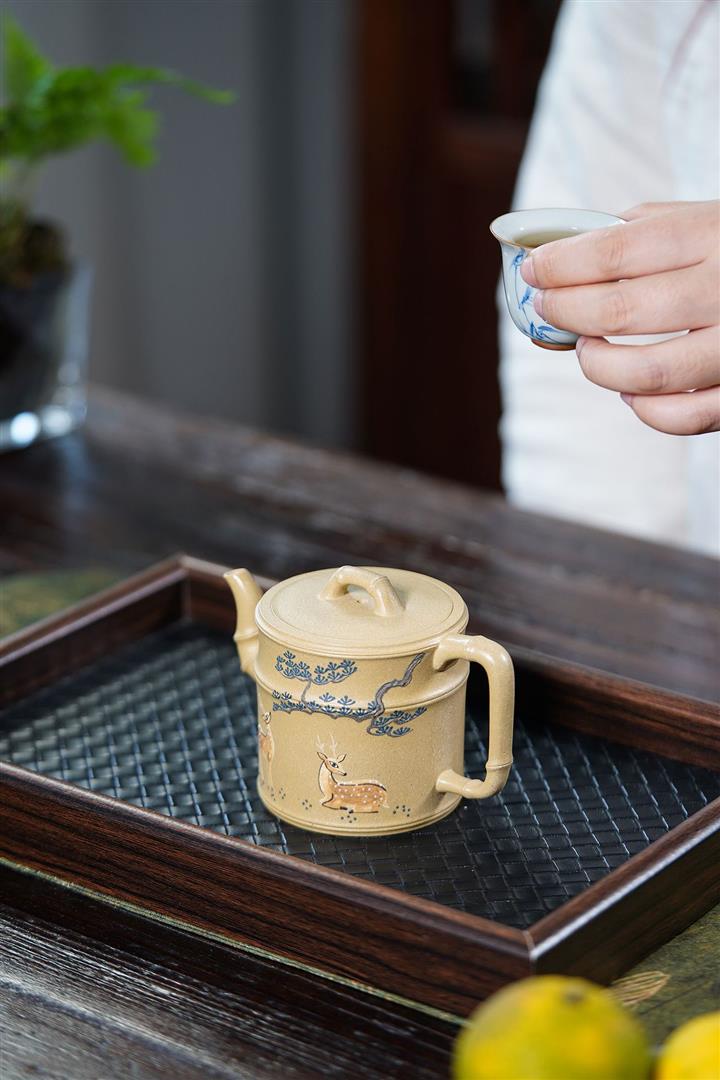 【泥料特點】砂土氣重,似淳實農民,日久使用,漸露鋒芒,養成變化,溫潤莊重。紫砂是壹種雙重氣孔結構的多孔性材質,氣孔微細,密度高。用紫砂壺沏茶,不失原味,且香不渙散,得茶之真香真味。紫砂使用越久,壺身色澤越發光亮照人,氣韻溫雅。紫砂壺長久使用器身會因撫摸擦拭,變得越發溫潤光澤。