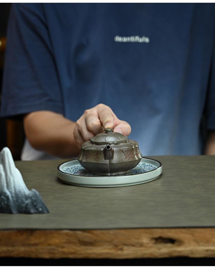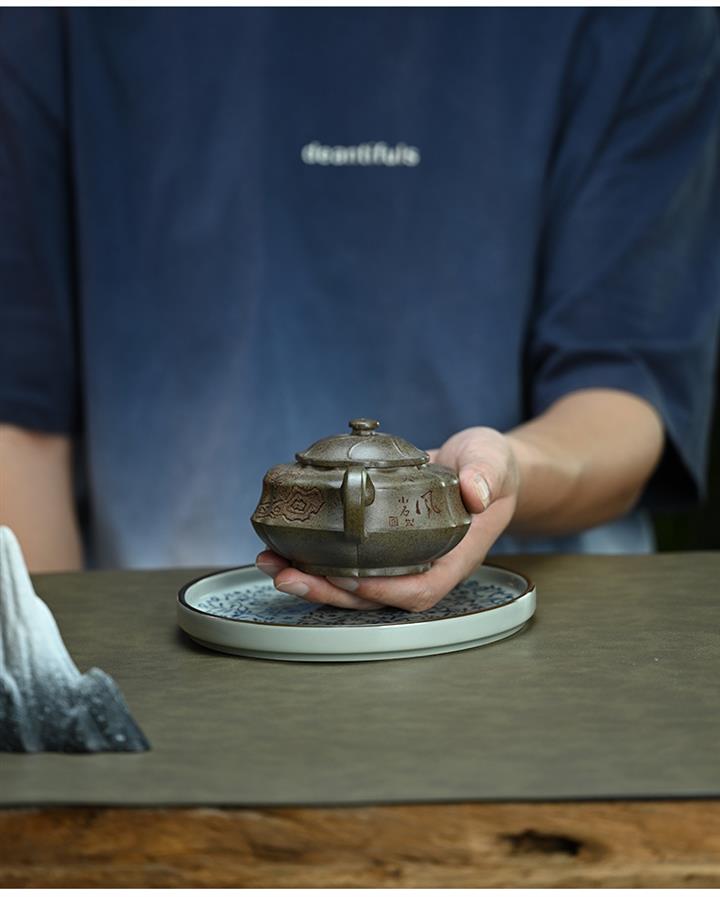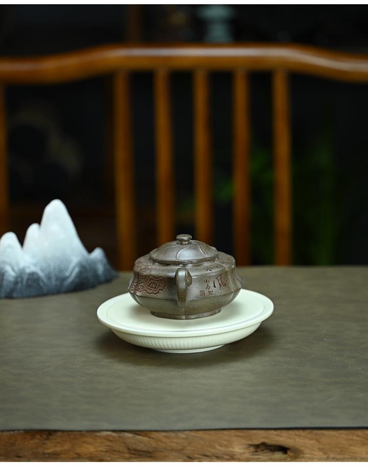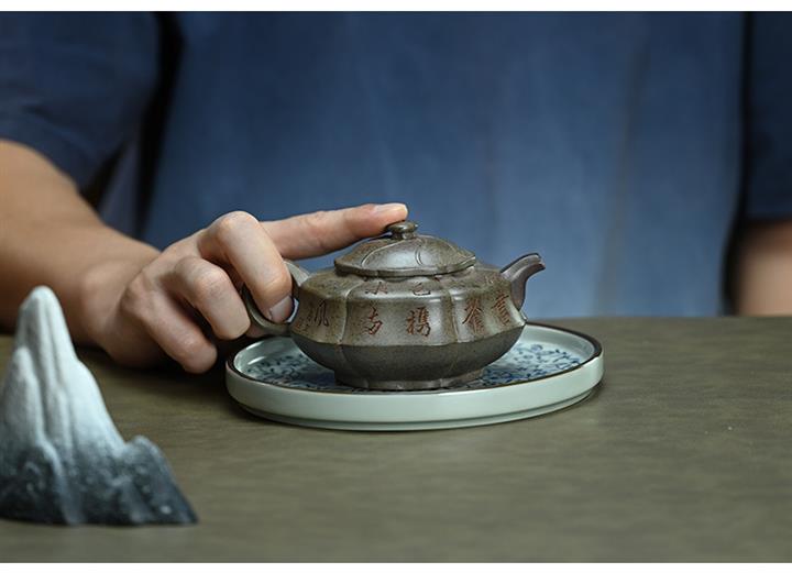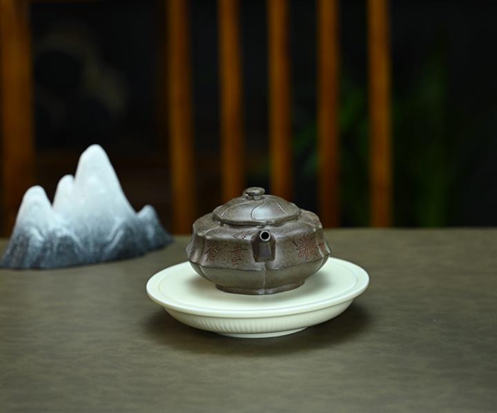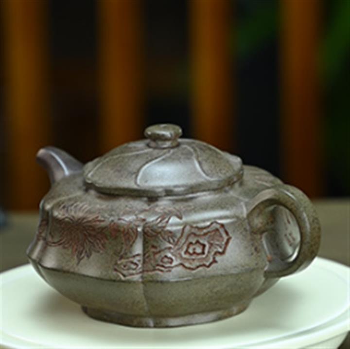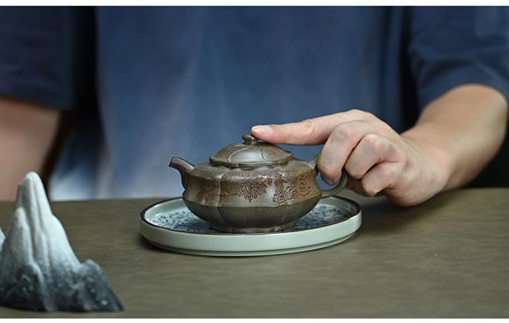 【泥料特點】砂土氣重,似淳實農民,日久使用,漸露鋒芒,養成變化,溫潤莊重。紫砂是壹種雙重氣孔結構的多孔性材質,氣孔微細,密度高。用紫砂壺沏茶,不失原味,且香不渙散,得茶之真香真味。紫砂使用越久,壺身色澤越發光亮照人,氣韻溫雅。紫砂壺長久使用器身會因撫摸擦拭,變得越發溫潤光澤。