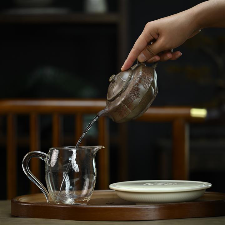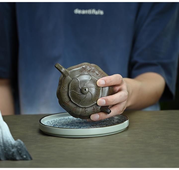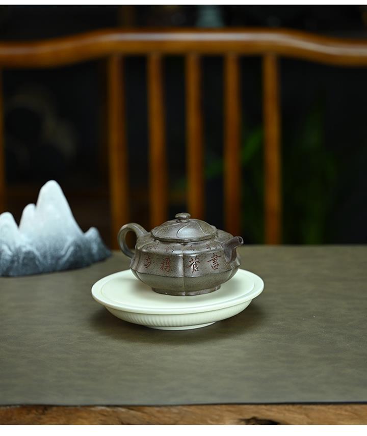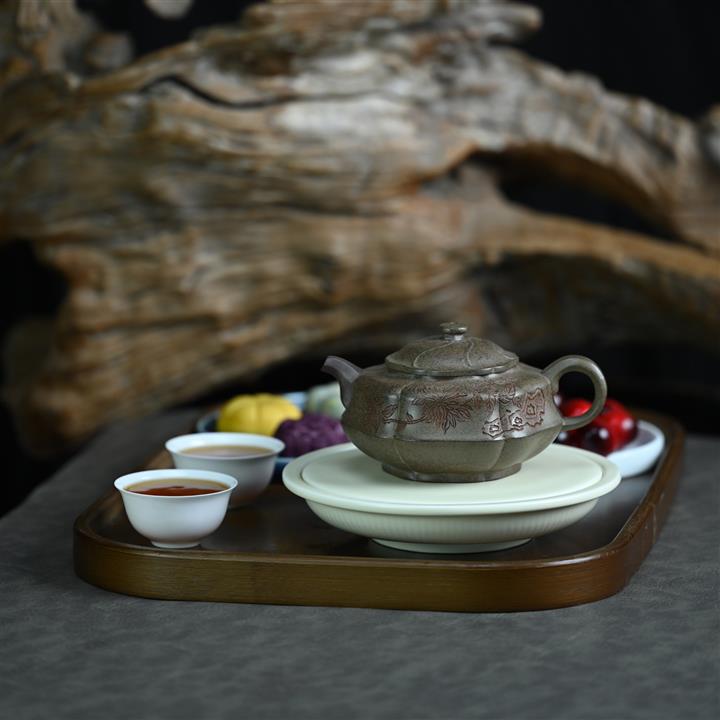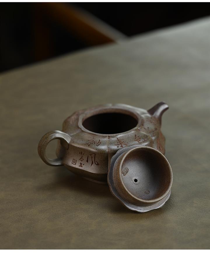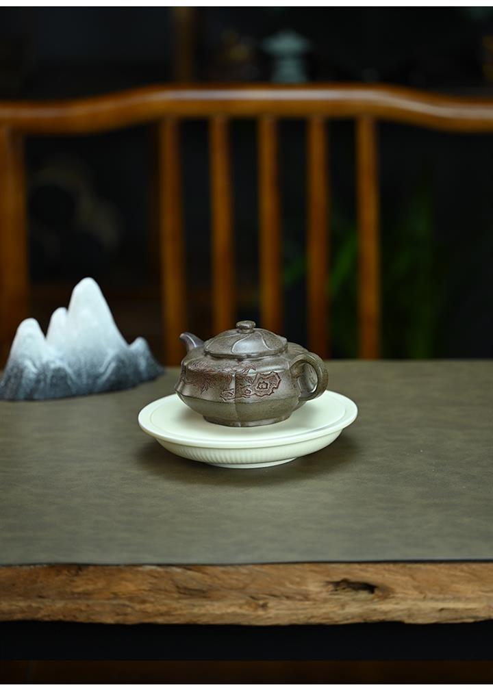 【泥料特點】砂土氣重,似淳實農民,日久使用,漸露鋒芒,養成變化,溫潤莊重。紫砂是壹種雙重氣孔結構的多孔性材質,氣孔微細,密度高。用紫砂壺沏茶,不失原味,且香不渙散,得茶之真香真味。紫砂使用越久,壺身色澤越發光亮照人,氣韻溫雅。紫砂壺長久使用器身會因撫摸擦拭,變得越發溫潤光澤。