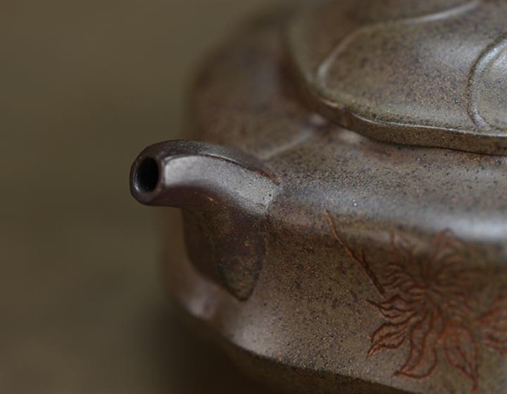280cc原礦雲霧沈香段純手工筋紋菊蕾茶壺POT8444