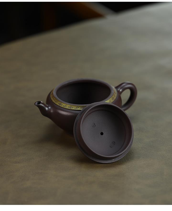 150cc原礦紫泥純手工描金婉玉茶壺POT8447