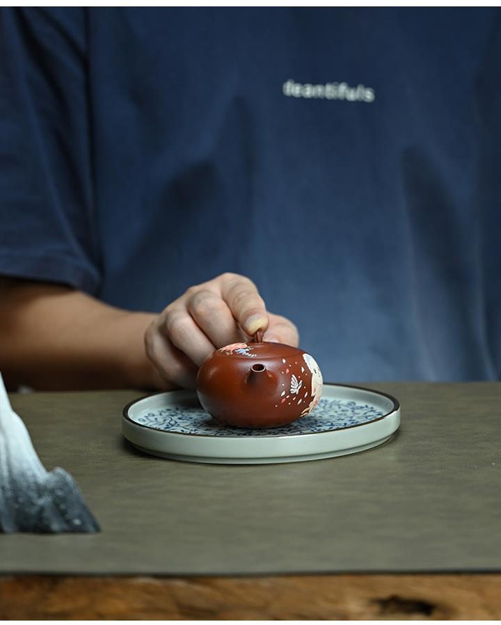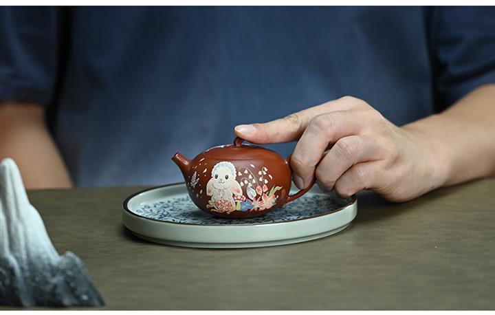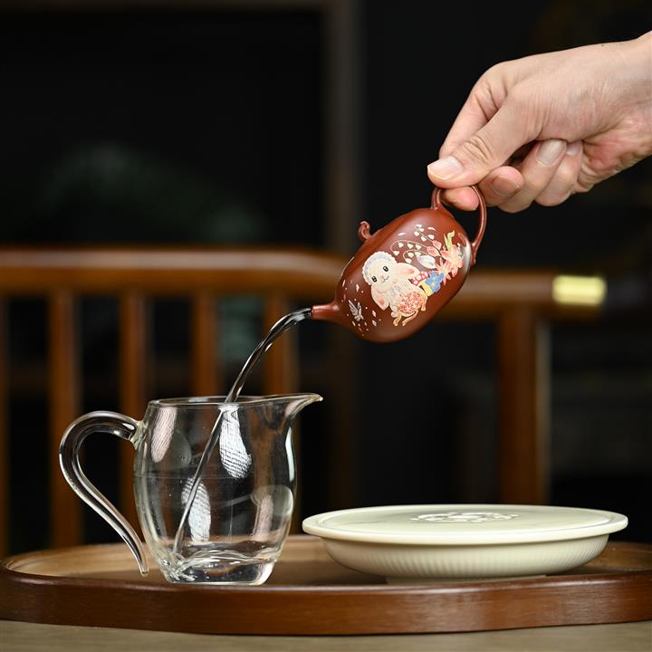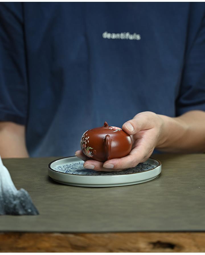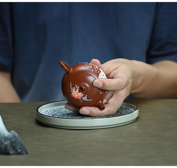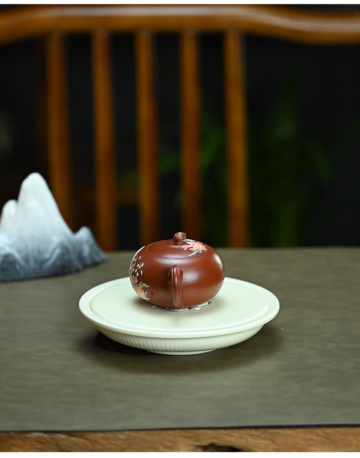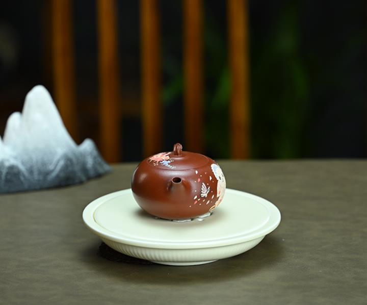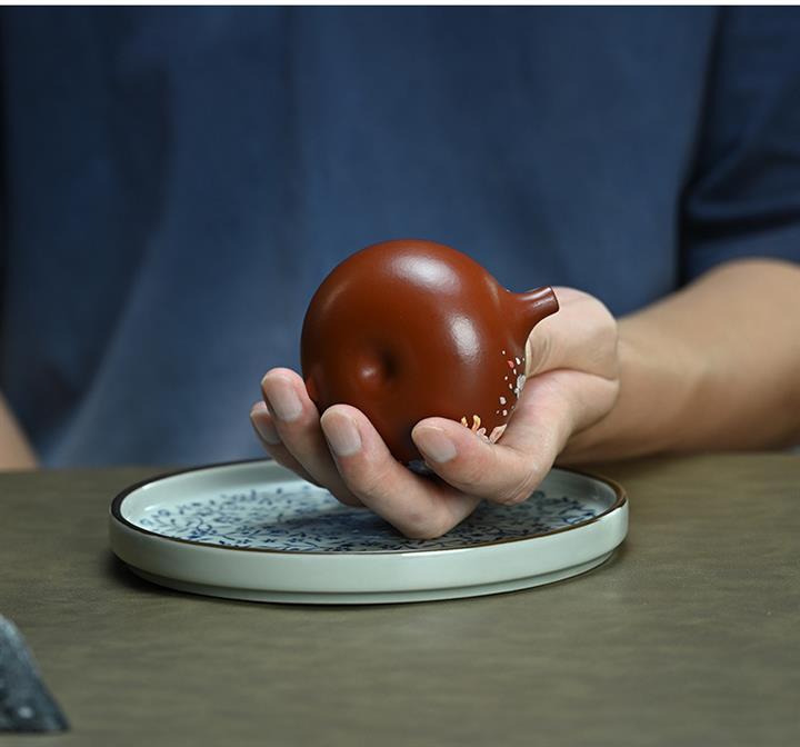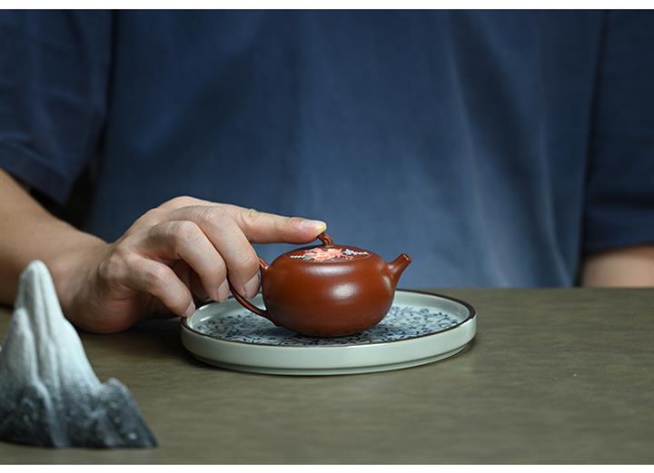 【泥料特點】砂土氣重,似淳實農民,日久使用,漸露鋒芒,養成變化,溫潤莊重。紫砂是壹種雙重氣孔結構的多孔性材質,氣孔微細,密度高。用紫砂壺沏茶,不失原味,且香不渙散,得茶之真香真味。紫砂使用越久,壺身色澤越發光亮照人,氣韻溫雅。紫砂壺長久使用器身會因撫摸擦拭,變得越發溫潤光澤。