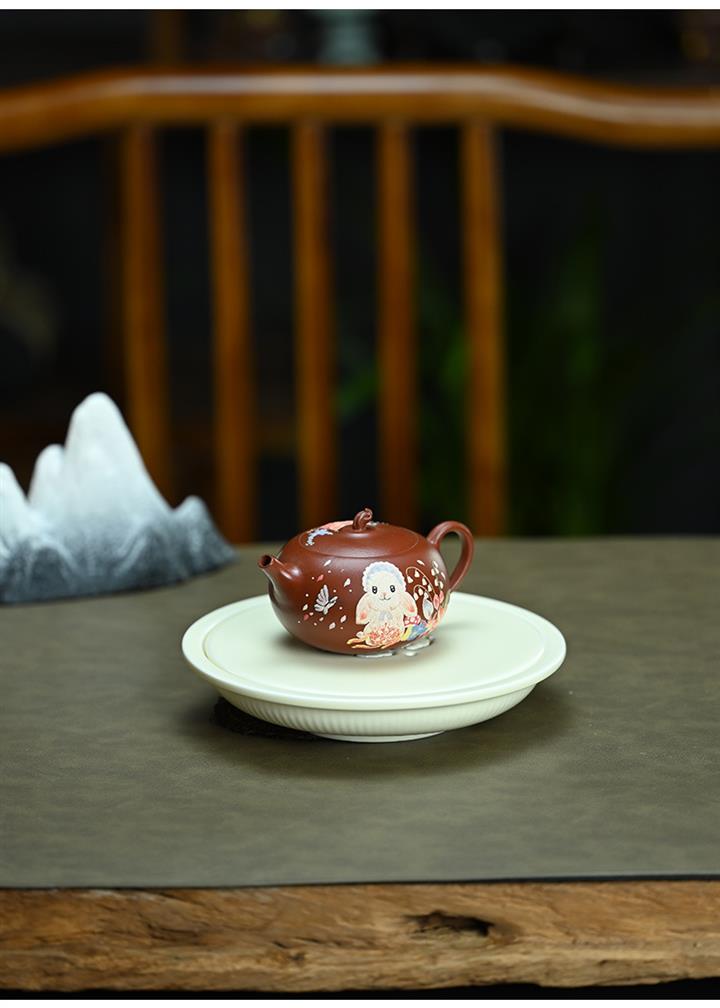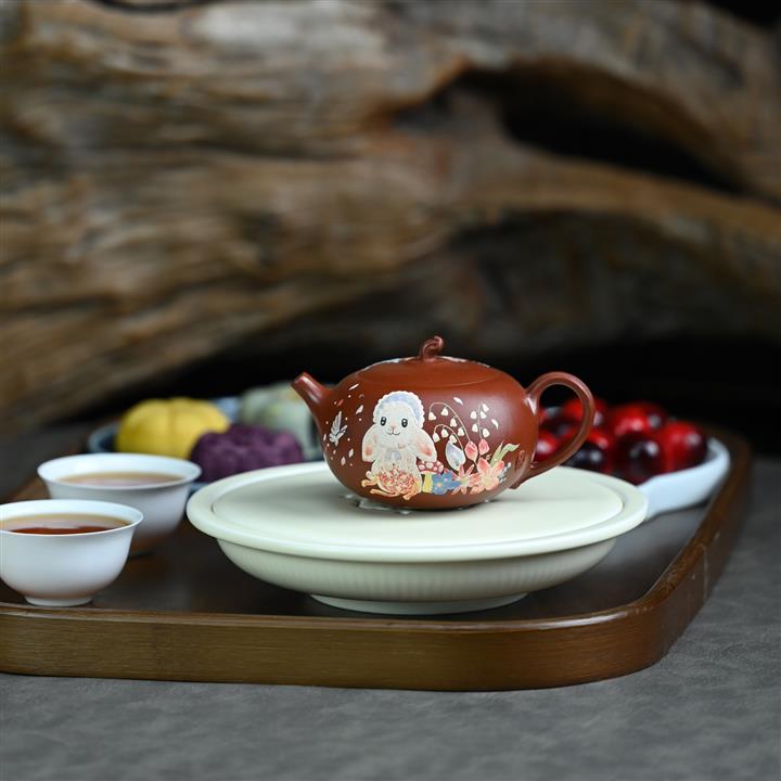 150cc原礦朱泥純玉兔扁西施茶壺POT8449