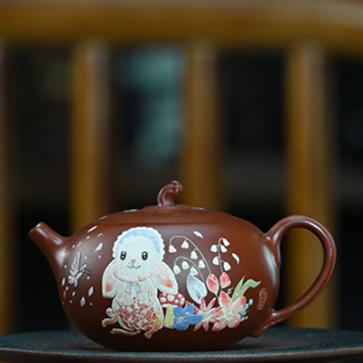 280cc原礦紫泥彩繪延壽河豚西施茶壺POT8451