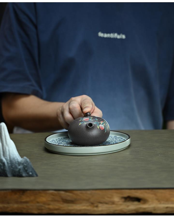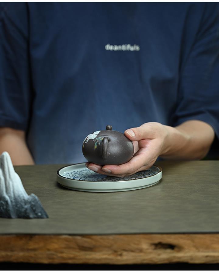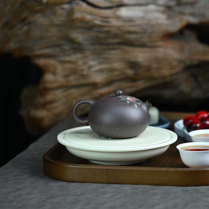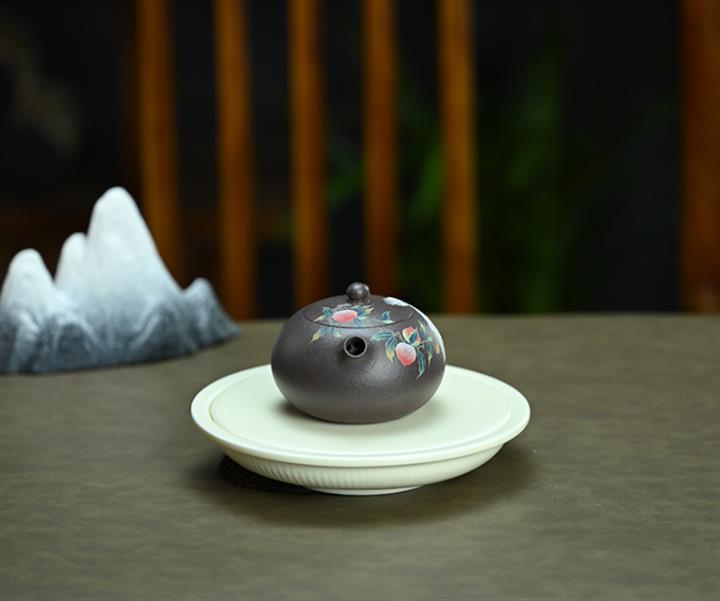 【泥料特點】砂土氣重,似淳實農民,日久使用,漸露鋒芒,養成變化,溫潤莊重。紫砂是壹種雙重氣孔結構的多孔性材質,氣孔微細,密度高。用紫砂壺沏茶,不失原味,且香不渙散,得茶之真香真味。紫砂使用越久,壺身色澤越發光亮照人,氣韻溫雅。紫砂壺長久使用器身會因撫摸擦拭,變得越發溫潤光澤。